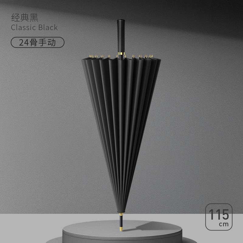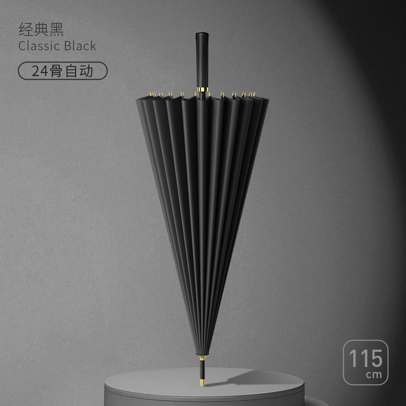 [24 костяная автоматическая] Классический длинный зонт черного цвета