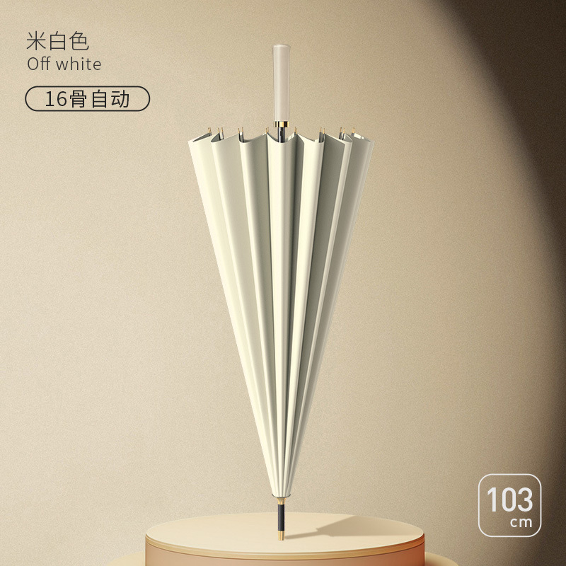 [Автоматический 16 костей] Белый - зонт с длинной ручкой соответствующего цвета - без чехла для зонта
