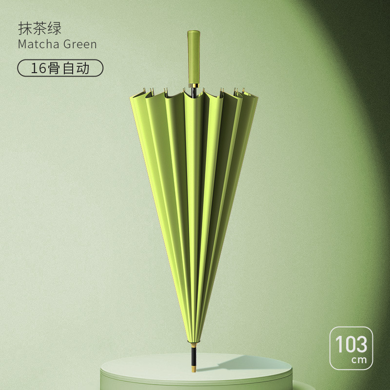 [Автоматический 16 костей] Зонт с длинной ручкой зеленого цвета Matcha без чехла для зонта