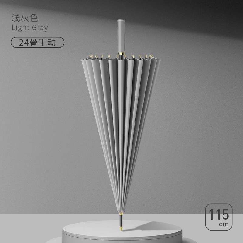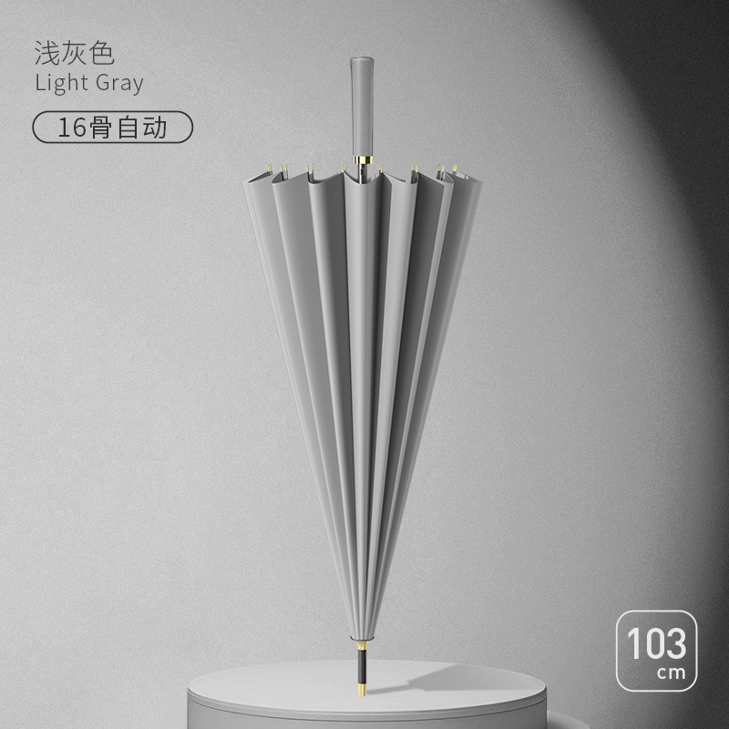 [Автоматический 16 костей] Светло-серый — зонт с длинной ручкой соответствующего цвета — без чехла для зонта