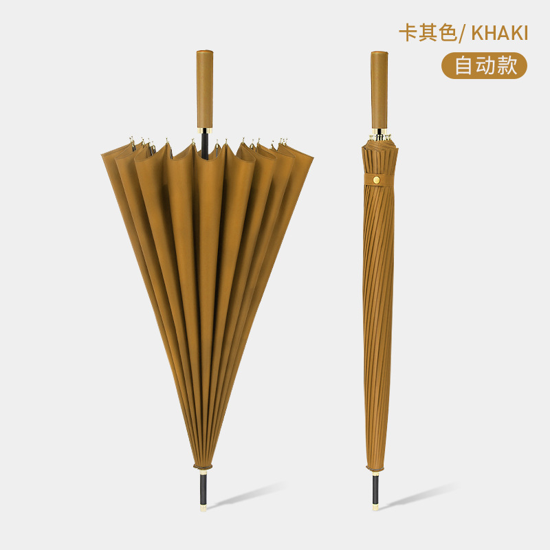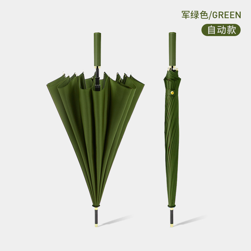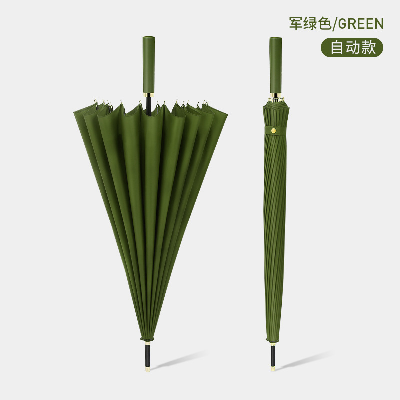 [Автоматический 16 костей] Зонт цвета хаки с длинной ручкой без чехла для зонта