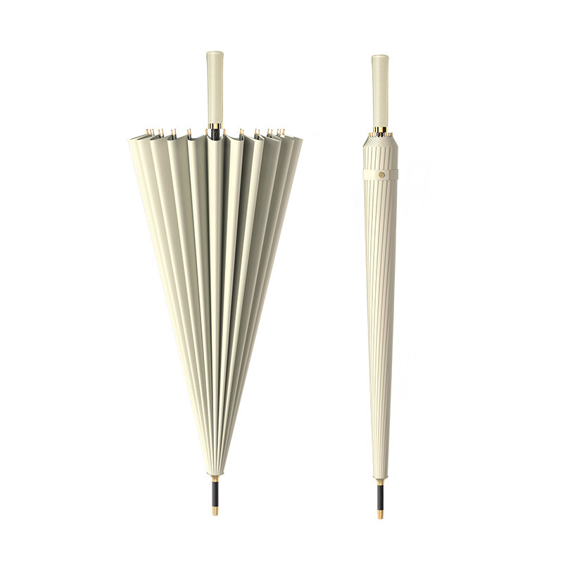 [Автоматический 24 кости] Кожаный зонт с длинной ручкой, соответствующий цвету порошка