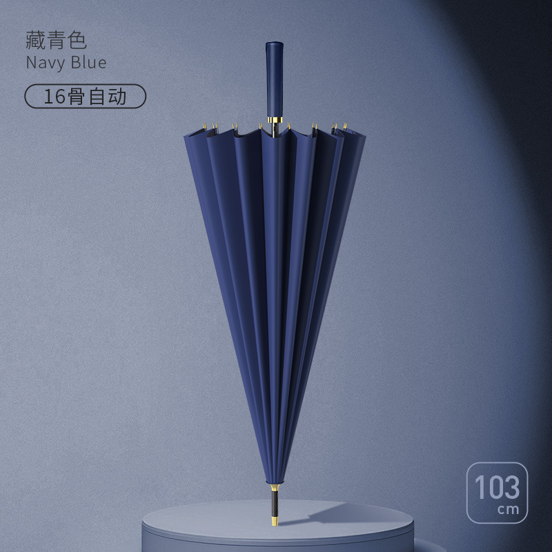 [Автоматический 16 костей] Темно-синий цвет, соответствующий зонту с длинной ручкой, без чехла для зонта