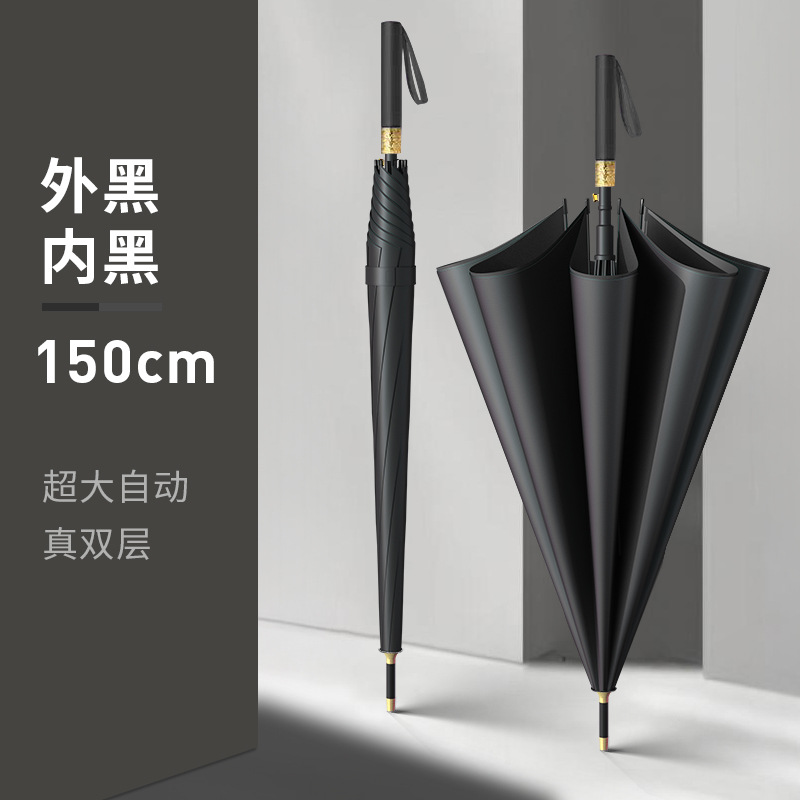 [Автоматический 16 костей] Классический черный - зонт с длинной ручкой соответствующего цвета - без чехла для зонта