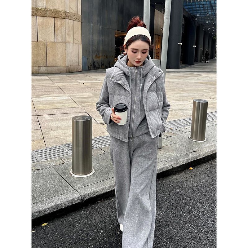Главная страница > 高级感流行运动风套装女秋冬季新款短款卫衣加厚无袖马甲三件套女