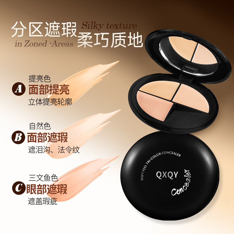 Мягкий трехцветный консилер QXQY, естественные стерео темные круги и следы от прыщей, безупречная основа под макияж для коррекции тусклого тона кожи и маскировки.