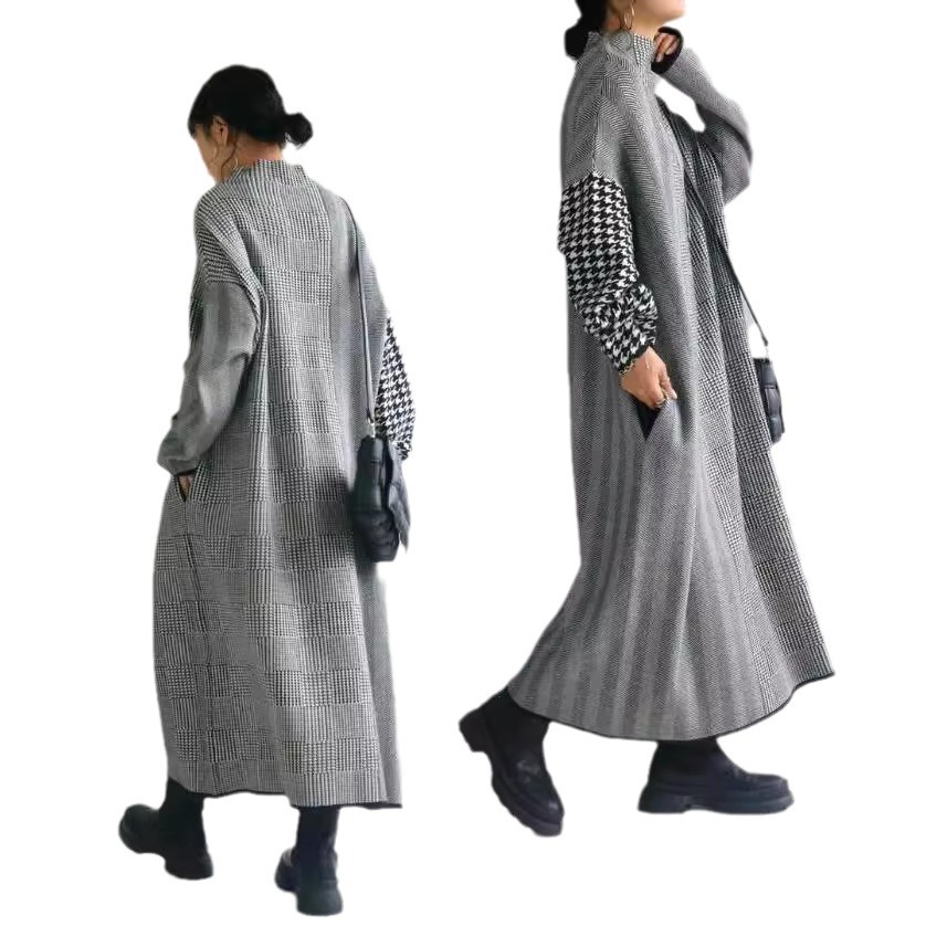 Изысканный дизайн тонкий, индивидуальное японское благородное свободное длинное трикотажное платье