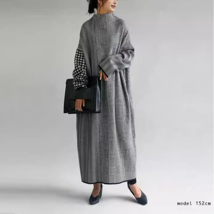 Главная страница > Изысканный дизайн тонкий, индивидуальное японское благородное свободное длинное трикотажное платье