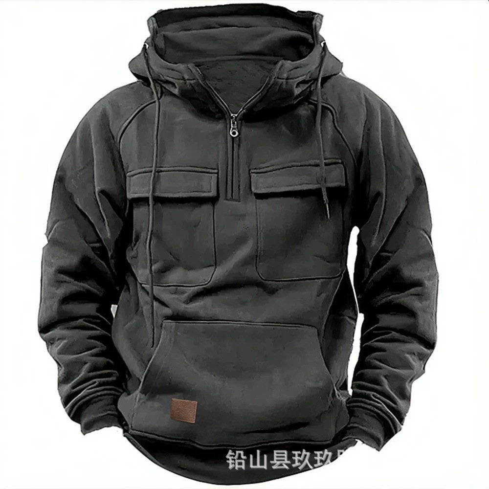 Главная страница > Новая мужская однотонная толстовка с капюшоном для осени и зимы, европейская и американская молодежная спортивная мужская толстовка с несколькими карманами на флисовой подкладке