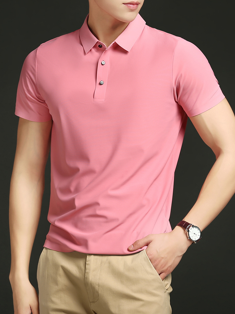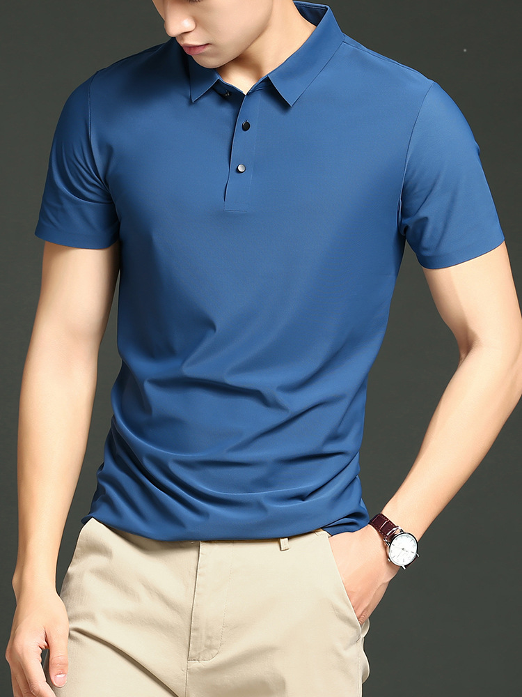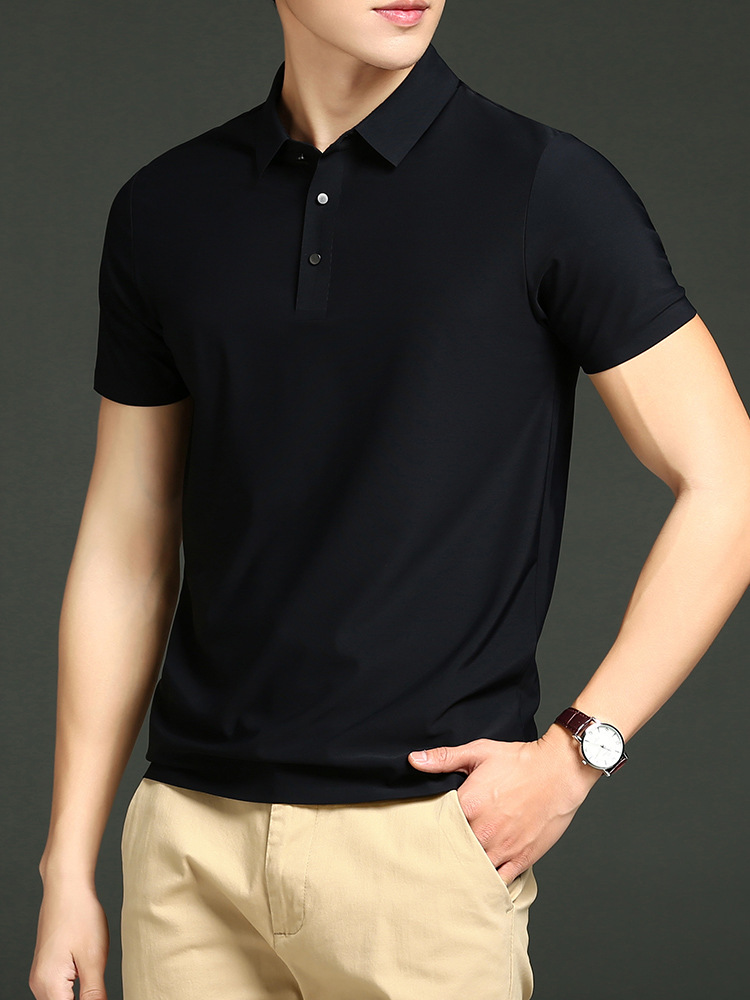 Главная страница > Рубашка поло с короткими рукавами без следов ледяной шелк мужская высококачественная повседневная летняя прохладная рабочая футболка однотонная футболка с отворотом