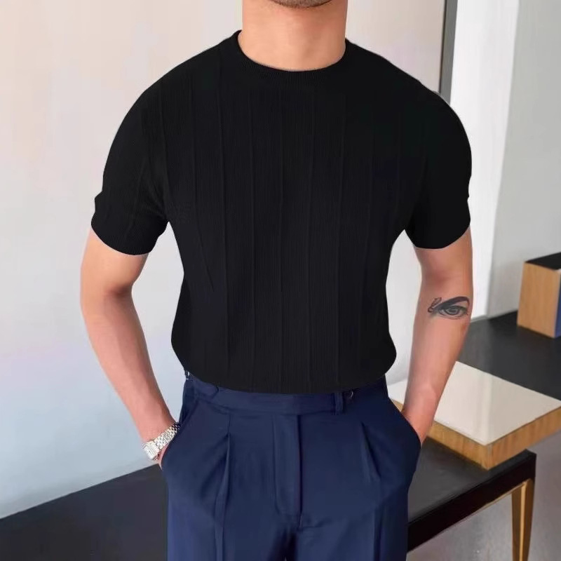 Легкая роскошная трикотажная футболка мужская летняя новая футболка с круглым вырезом с половиной рукава мужская короткая рубашка с тонкими корейскими рубашками