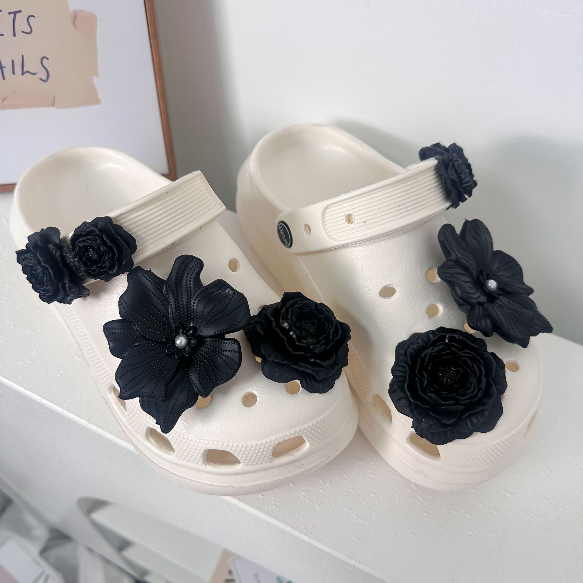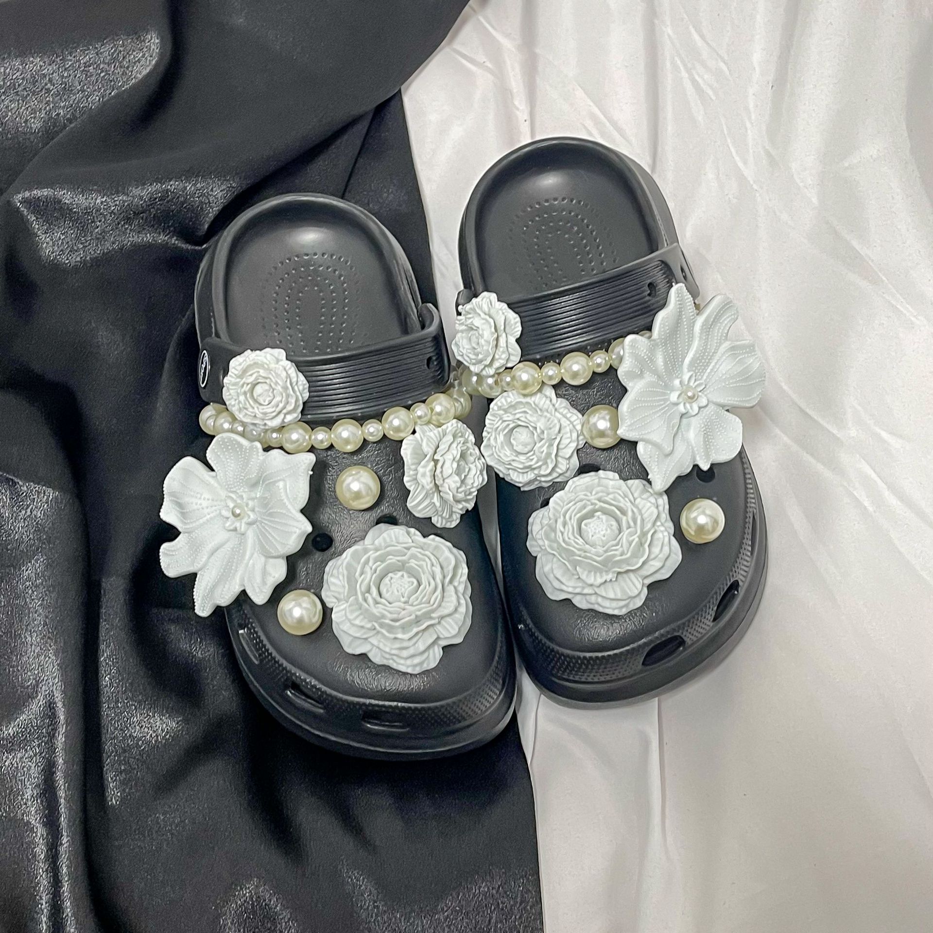 Букет - черный + жемчуг + цепочка [пряжка 14 шт.#Обувь в комплект не входит]