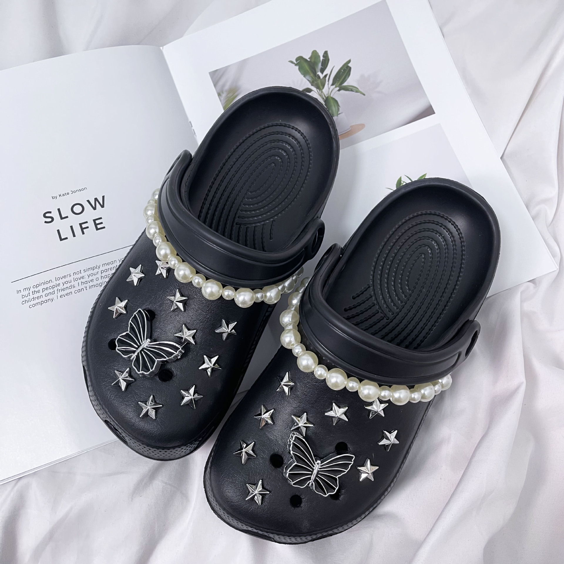 Жемчужная цепочка с кристаллами-бабочками [пряжка из 12 частей]#Обувь в комплект не входит]