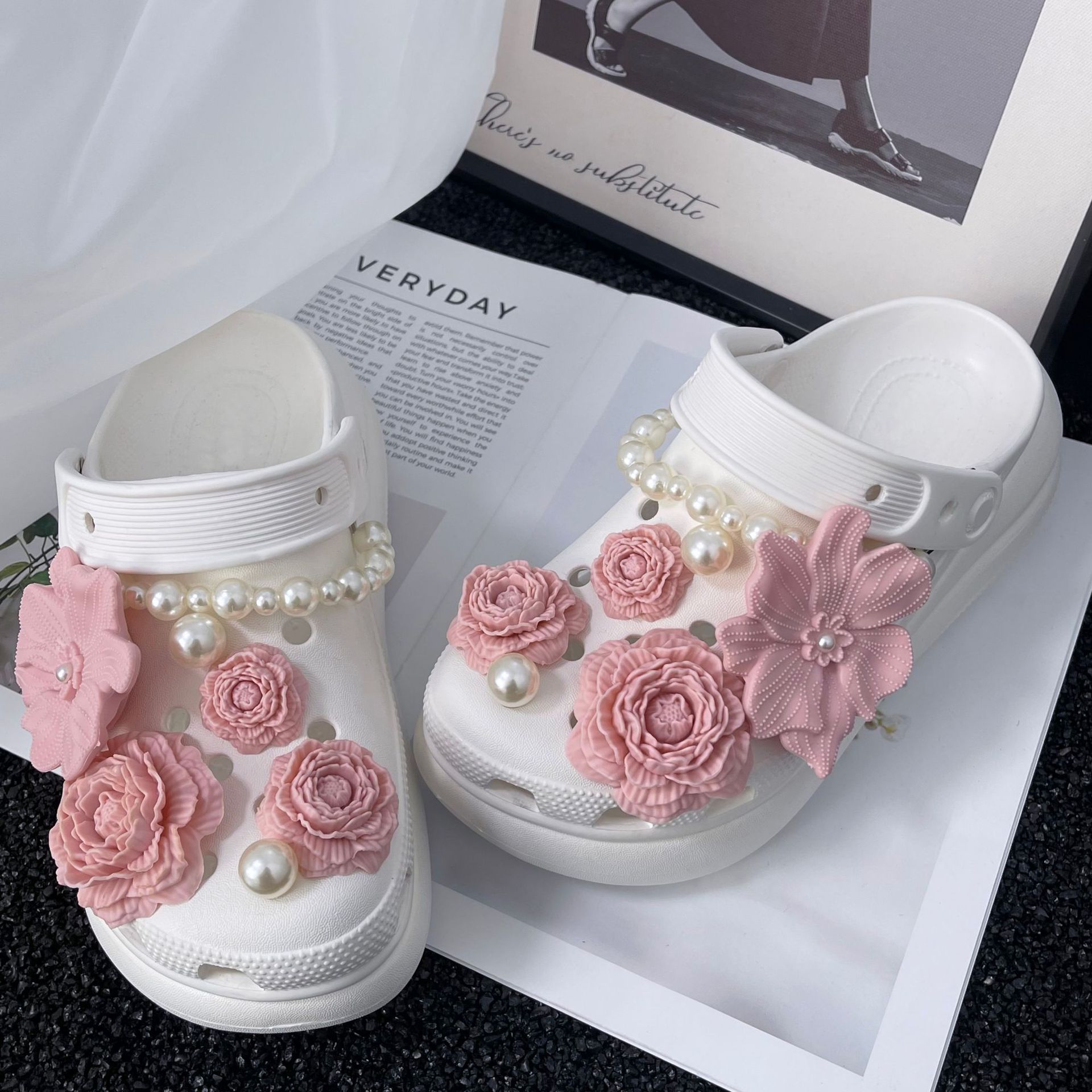 Букет-Розовый+Жемчуг+Цепочка [пряжка 14 шт.#Обувь в комплект не входит]