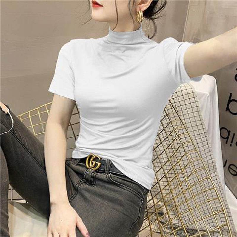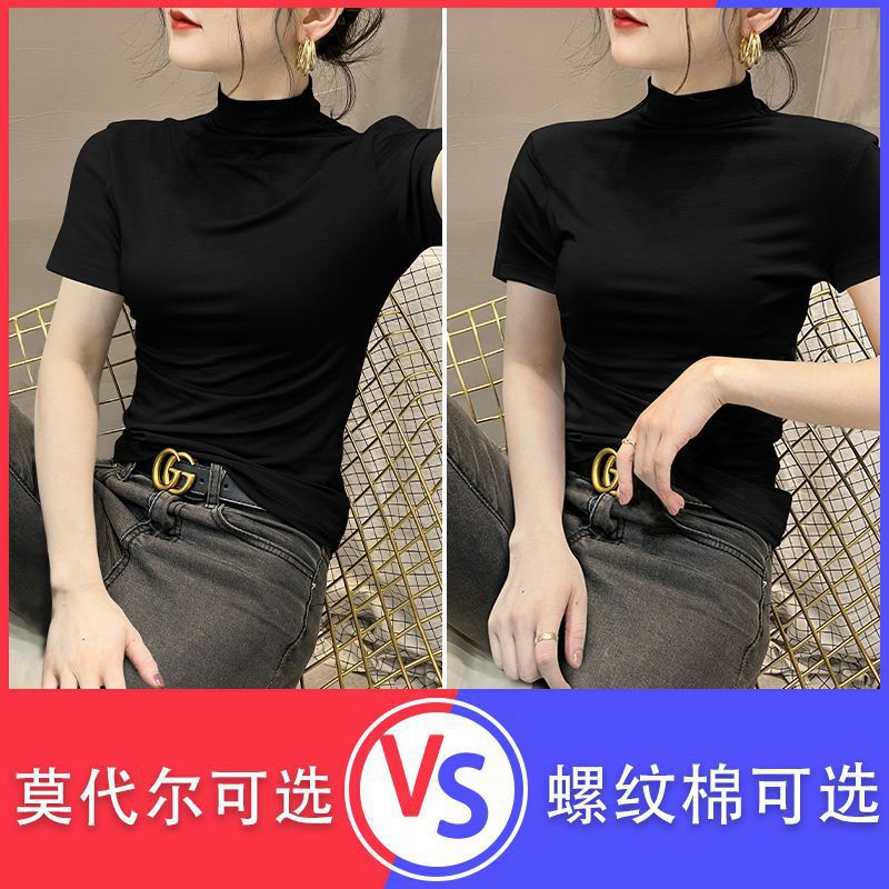 Главная страница > Черная женская футболка из модала, с короткими рукавами, новая летняя рубашка с полугольфом, обтягивающий топ, модный