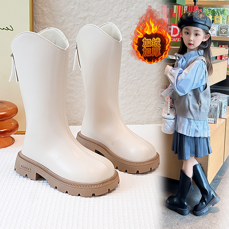 Обувь для девочек, зимние детские сапоги, весенне-осенняя детская обувь, детские длинные сапоги, новинка 2025 года, высокие сапоги для девочек, сапоги на флисовой подкладке