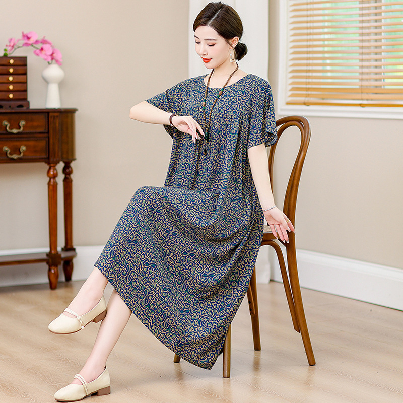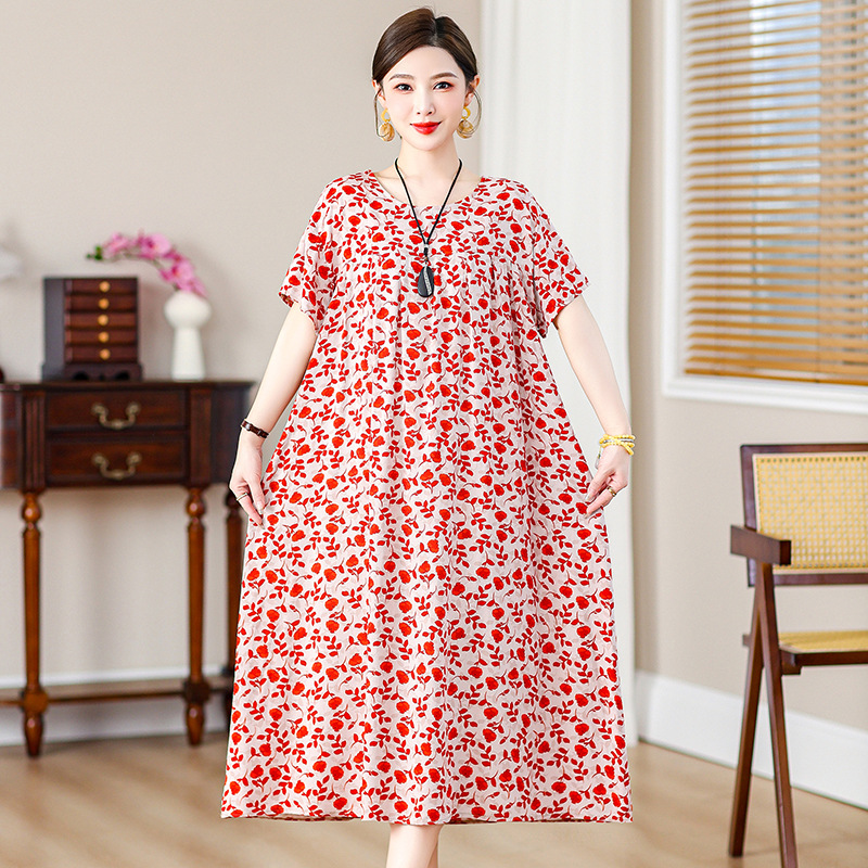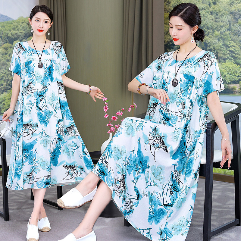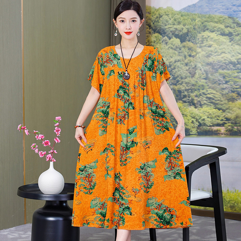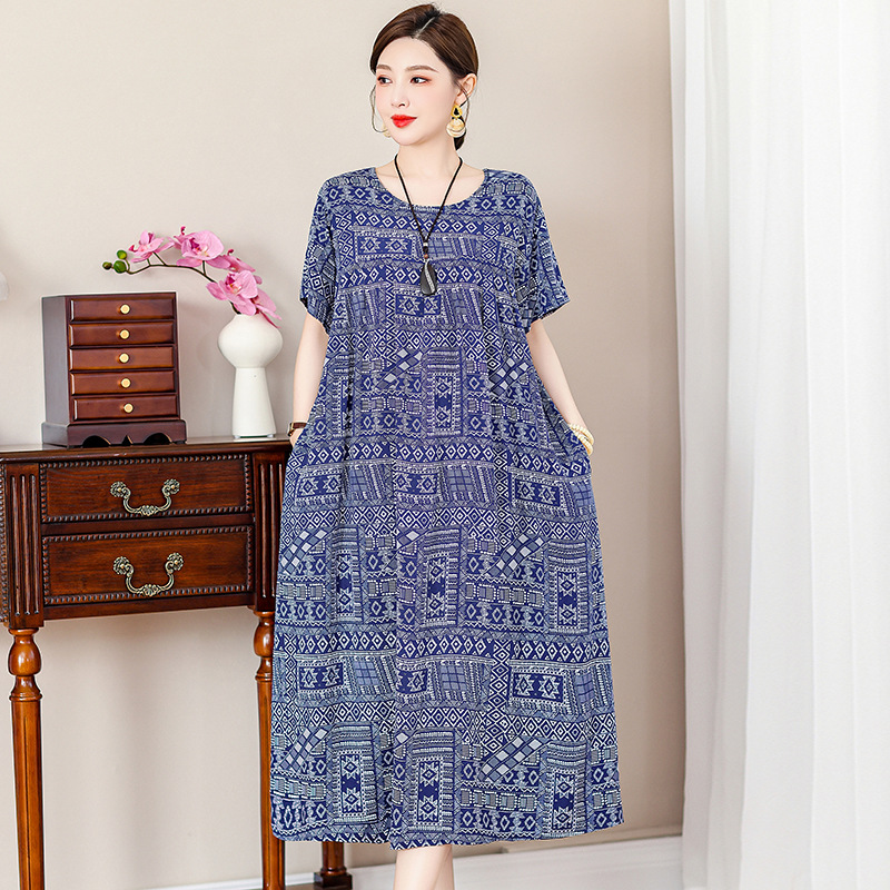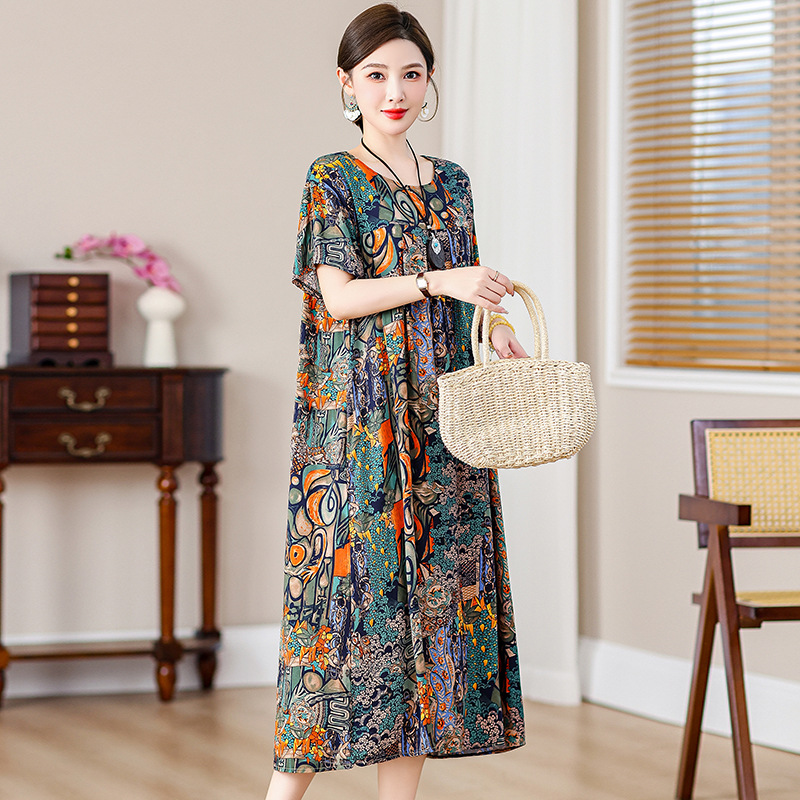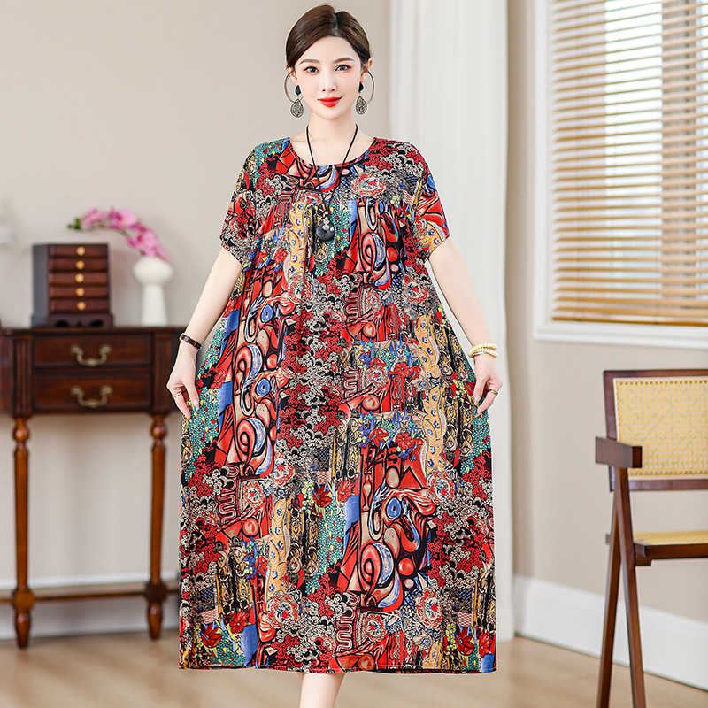Главная страница > 2023 летняя Толстая сестра, уменьшающая возраст, плюс размер, женское новое платье с принтом, легкое спелое Королевское Сестринское платье высокого уровня с темпераментом