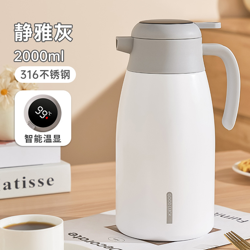 [Корпус из нержавеющей стали + внутренний резервуар] Серый термочайник Jingya
