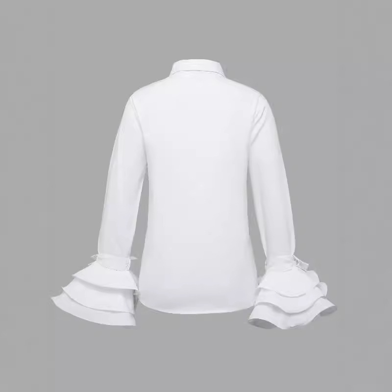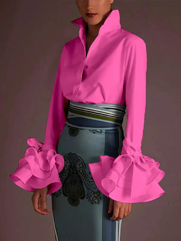 Главная страница > 2024 европейские и американские трансграничные осенние новые женские сплошные тонные повседневные рубашки с рукавами из листьев лотоса