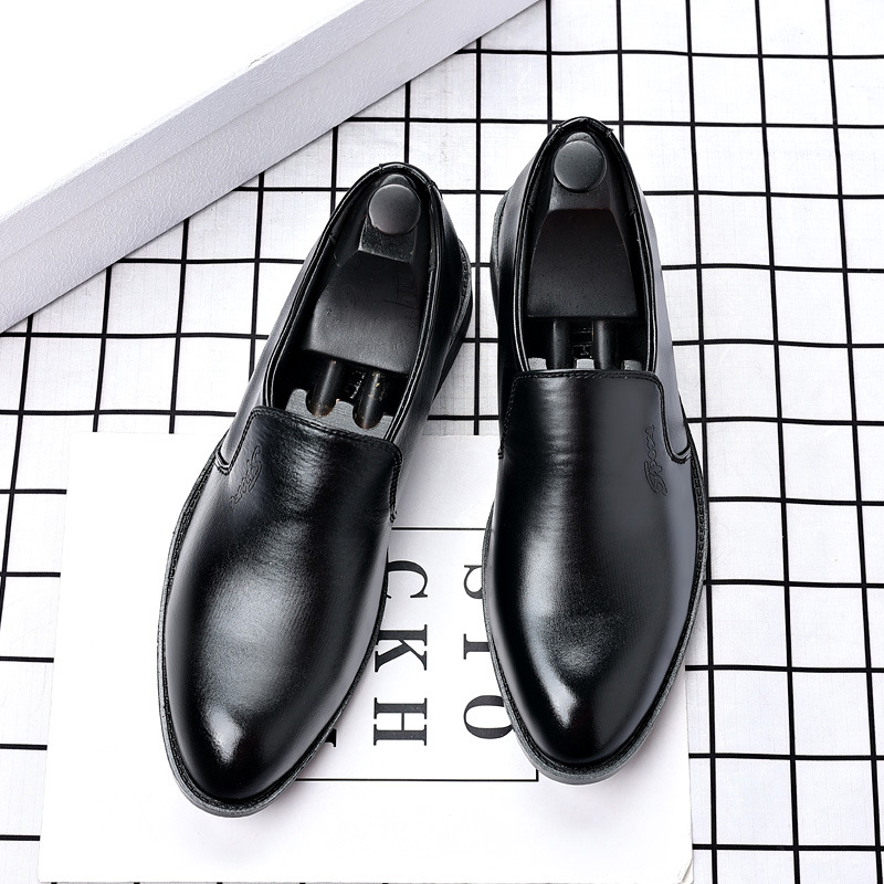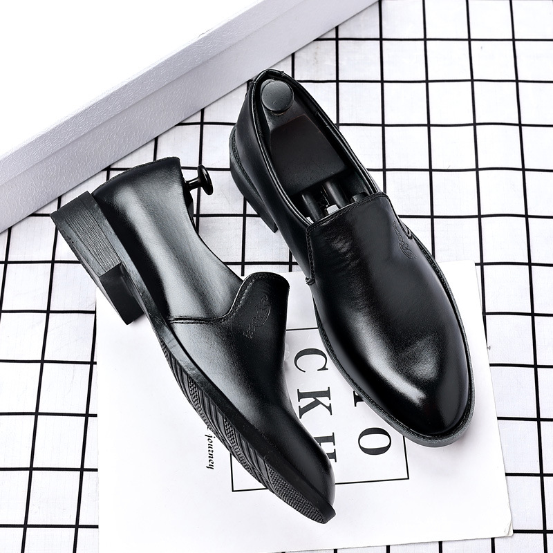 Главная страница > Деловое платье, кожаные туфли с острым носком, мужская обувь, увеличивающая внутреннюю высоту, модная повседневная обувь в британском Корейском стиле без шнуровки, однослойная обувь