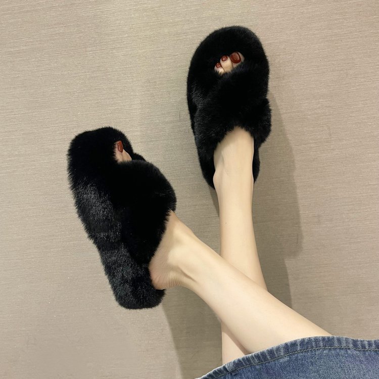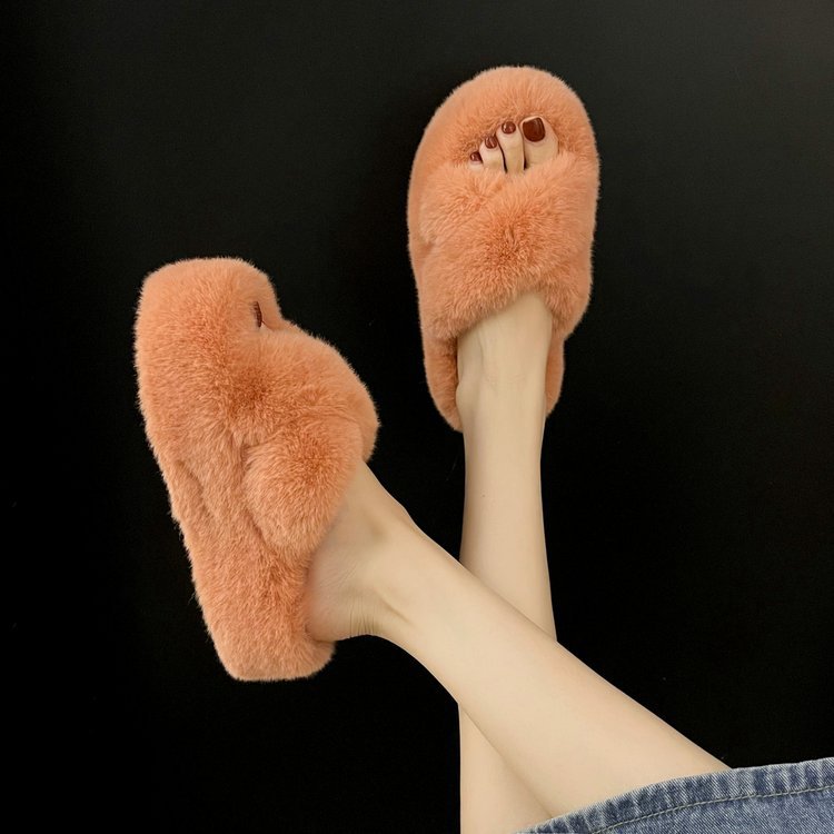 Главная страница > Женские меховые тапочки с перекрестными завязками, подходящие для ношения на улице, новые теплые тапочки на толстой подошве без застежек для осени и зимы 2025, утолщенные домашние тапочки для женщин.