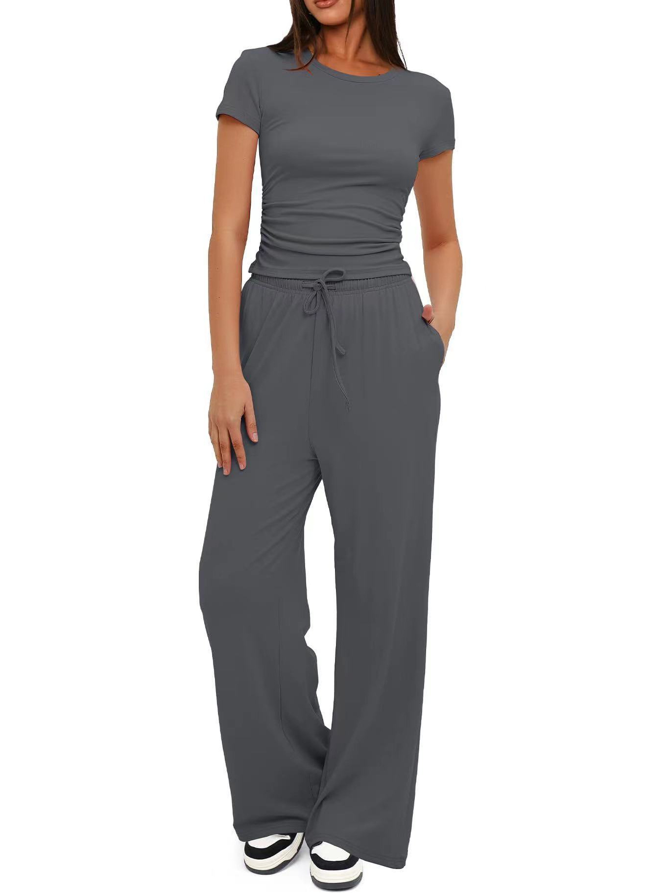 Главная страница > Женский комплект из двух предметов 2024 года: топ с коротким рукавом и плиссировкой, повседневные спортивные брюки, модный комплект в стиле Y2K.
