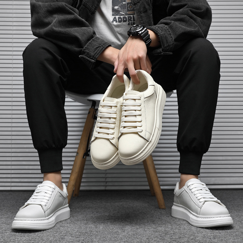Главная страница > [Lei Jun та же модель] первый слой кожаных маленьких белых туфель с толстым подошвением белых спортивных туфель для мужчин с диким бизнес-туфлями