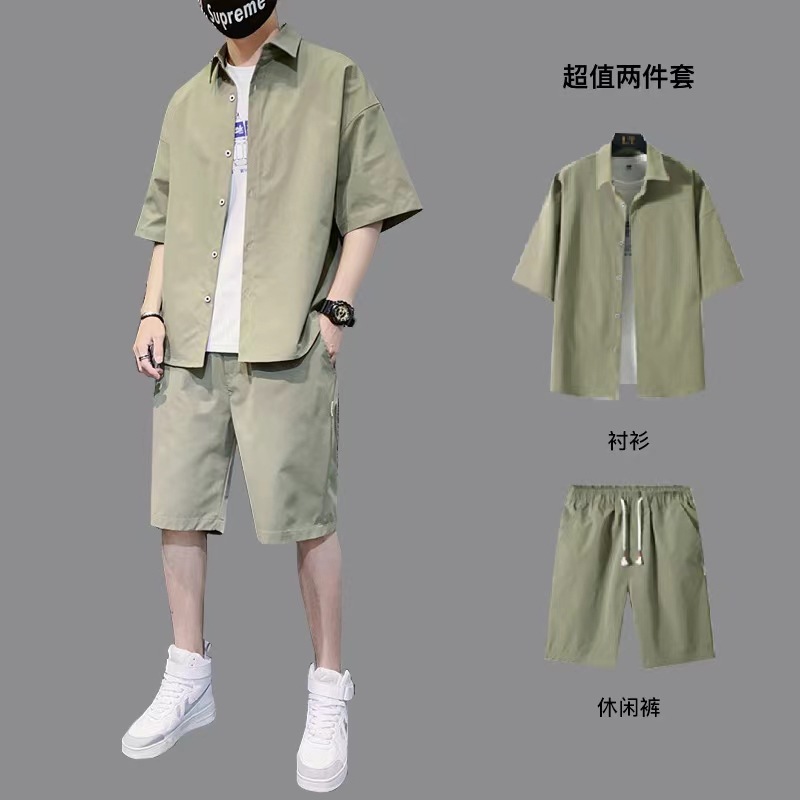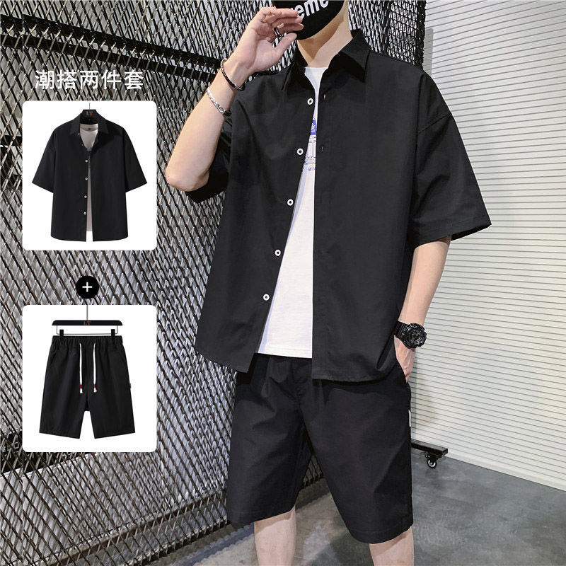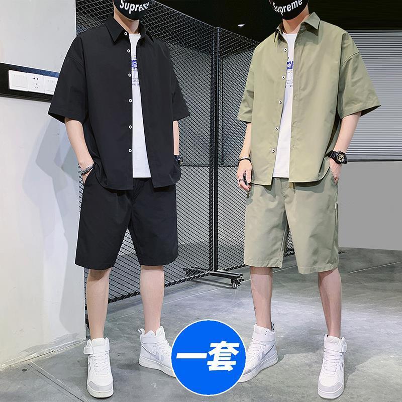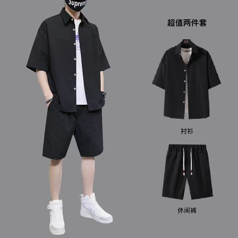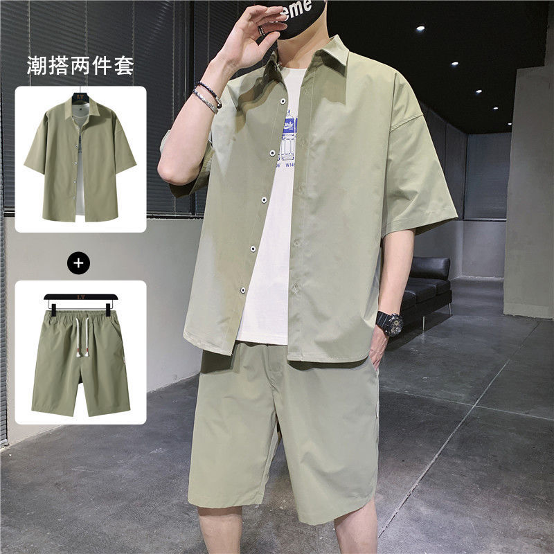Главная страница > Мужской повседневный костюм, летняя тонкая спортивная одежда из ледяного шелка, модные подходящие модные милые шорты с короткими рукавами в Корейском стиле