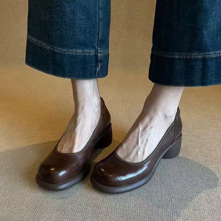 Главная страница > Готовая версия ~ женские туфли из натуральной кожи с неглубоким носком в стиле ретро, туфли Мэри Джейн без шнуровки с круглым носком и толстым каблуком, маленькие кожаные туфли в британском стиле.