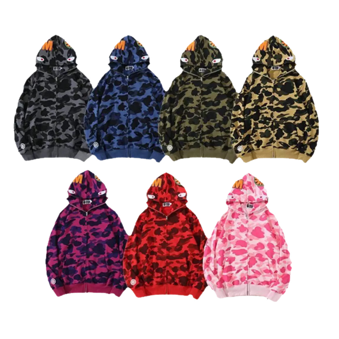 Главная страница > Кепка с головой акулы Bape, кросс-граничная внешняя торговля, дропшиппинг, модный бренд, классическая махровая толстовка, многоцветная куртка с головой обезьяны