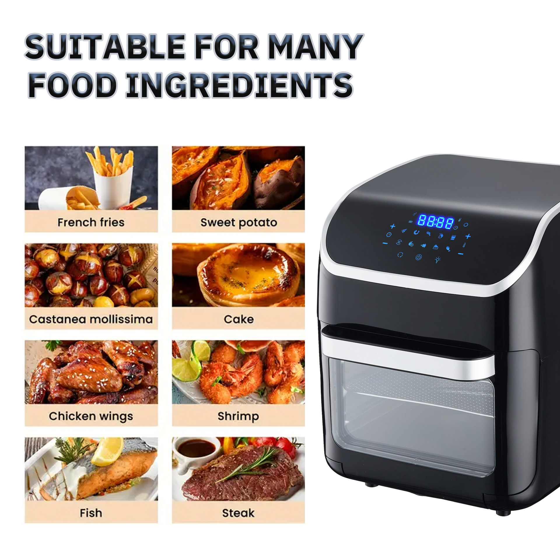 В наличии: бытовая аэрофритюрница 12 л, большая емкость, для жарки картофеля фри и запекания курицы, с сенсорным управлением, функция тостера-духовки