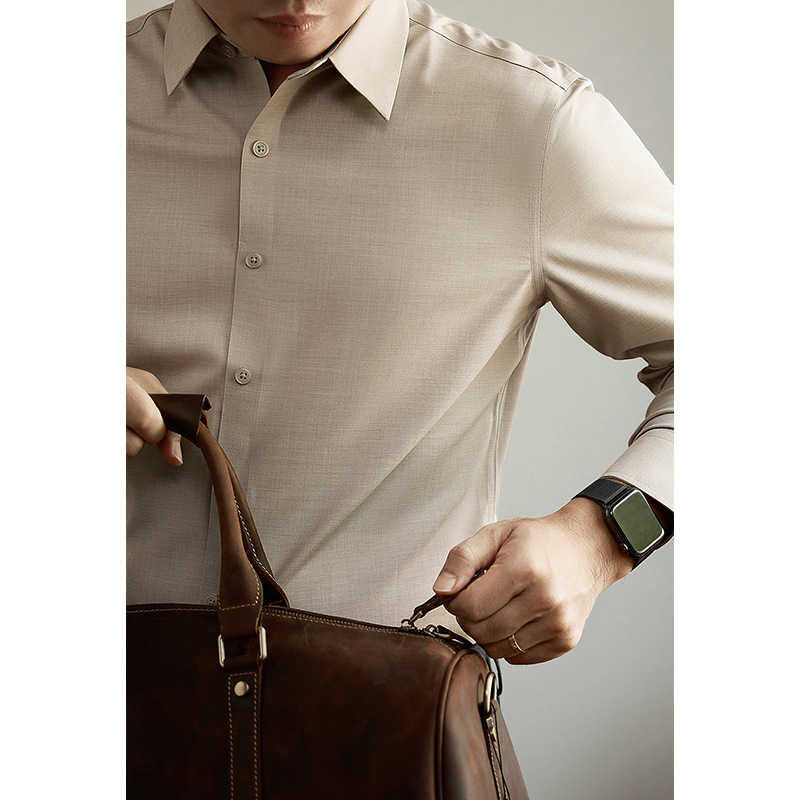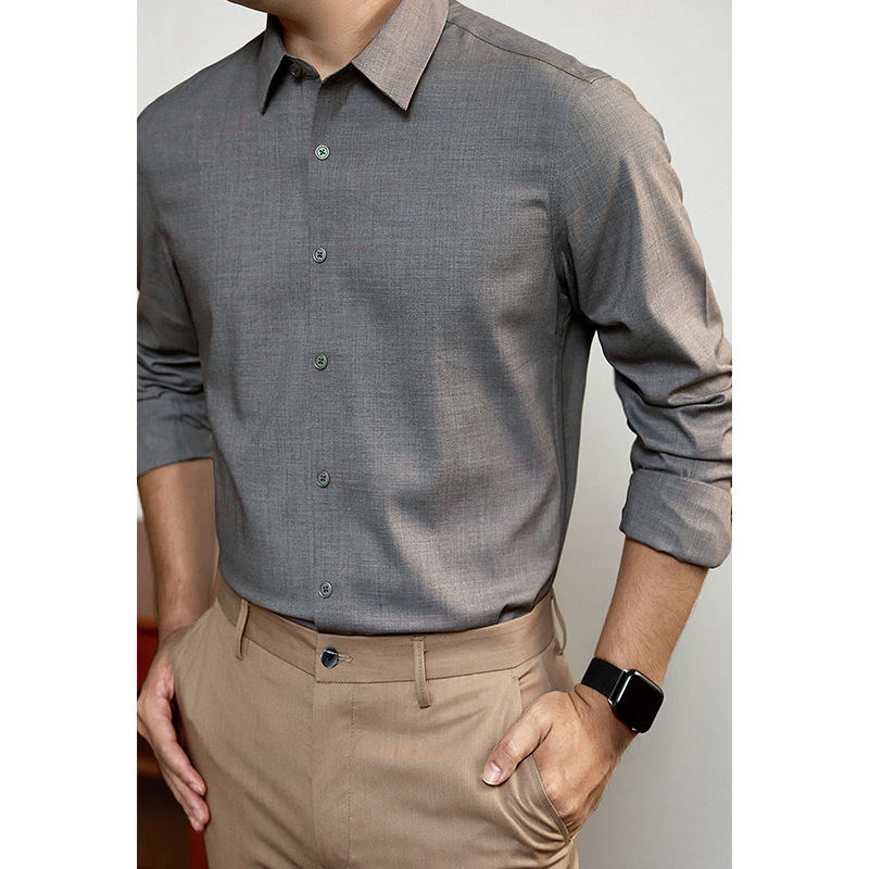 Главная страница > Высококачественная модальная рубашка с длинными рукавами, мужская без железа, против морщин, деловая формальная светло-серая осенняя профессиональная рубашка 2020, новый стиль