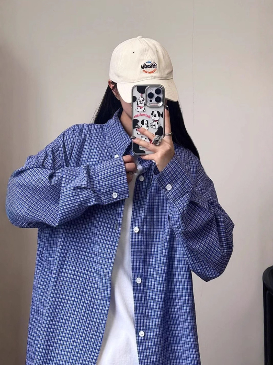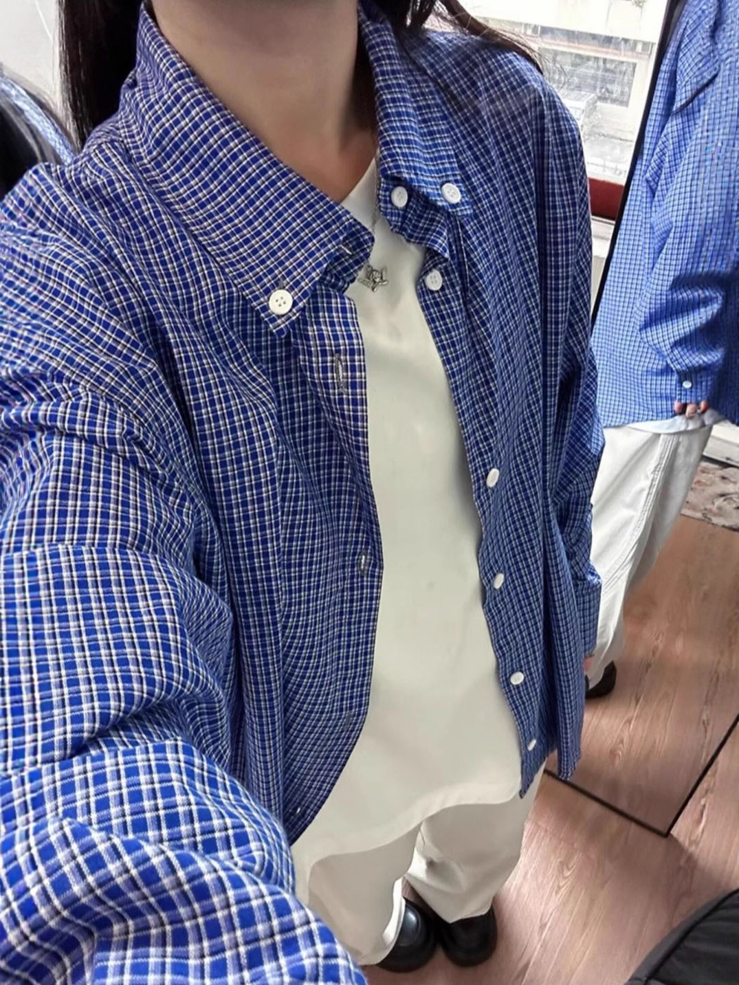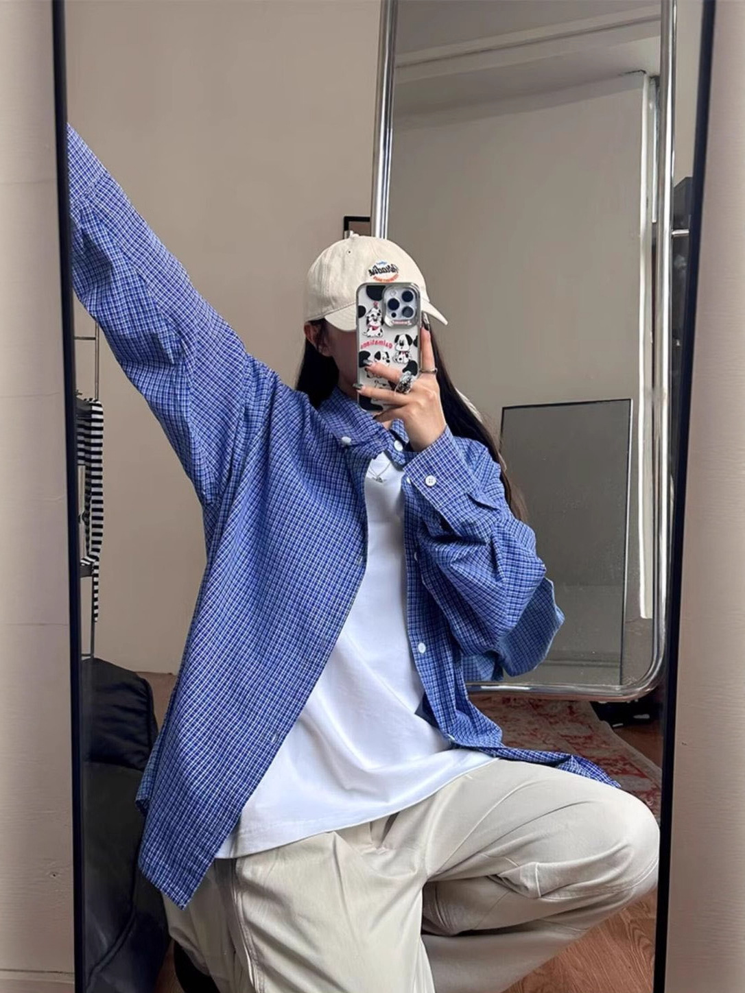 Главная страница > Прямые поставки с фабрики: женская рубашка-куртка в синюю клетку, новая модель для ранней осени, в стиле колледжа, свободная многослойная базовая куртка.
