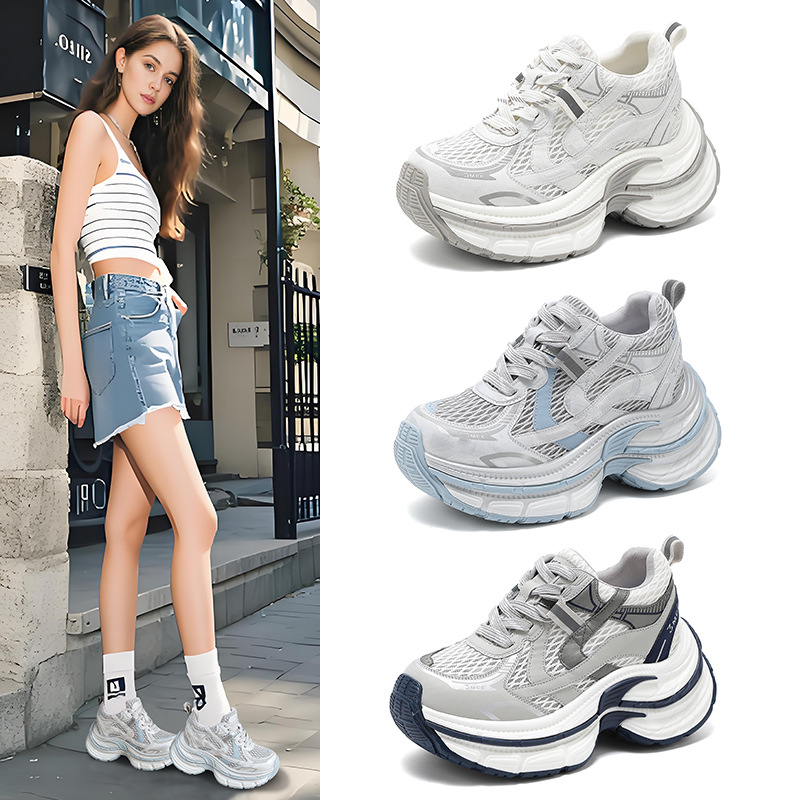 Главная страница > Женские кроссовки в стиле Париж, увеличивающие рост на 9 см, новые сетчатые универсальные спортивные повседневные туфли, осень 2025 года.