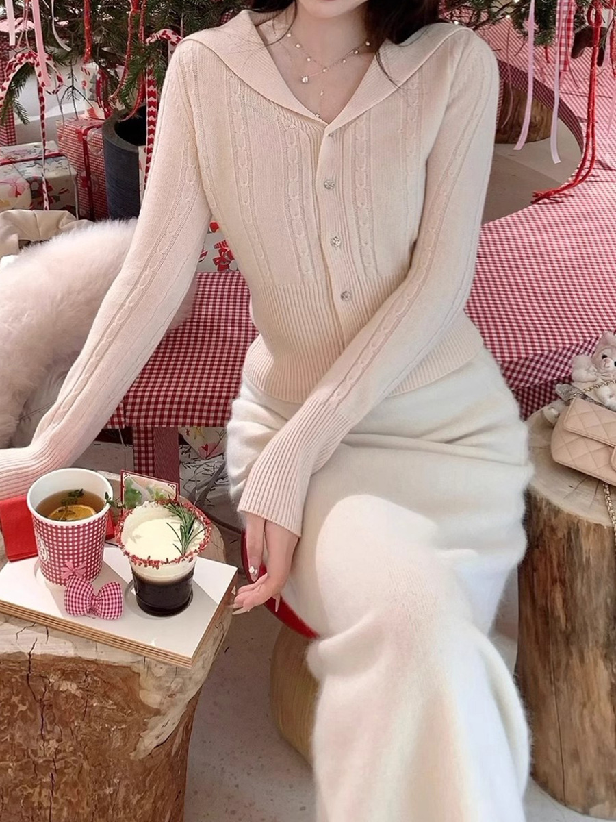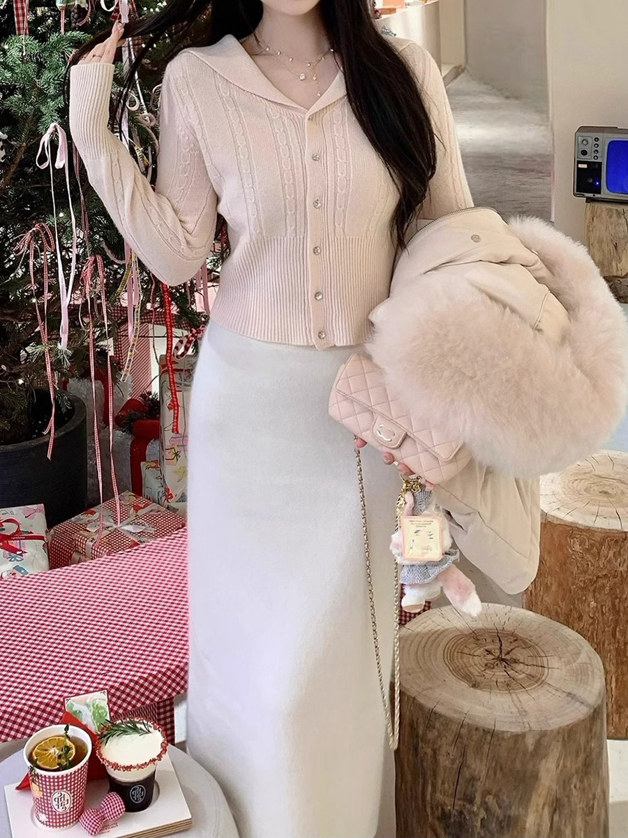 Главная страница > Новый зимний универсальный модный однотонный свитер-кардиган из шерсти с воротником-стойкой для женщин, в стиле милой юности