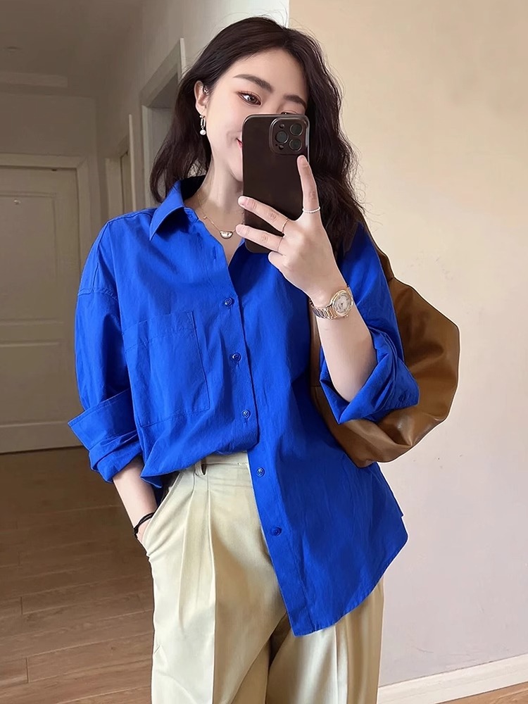 Главная страница > Новый гонконгский ветер Кляйн синяя рубашка с длинными рукавами весной и летом