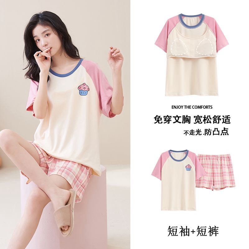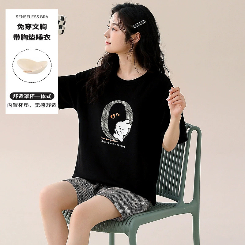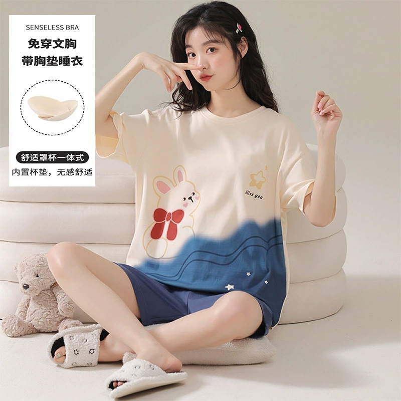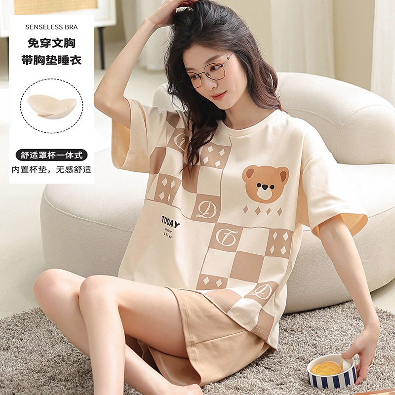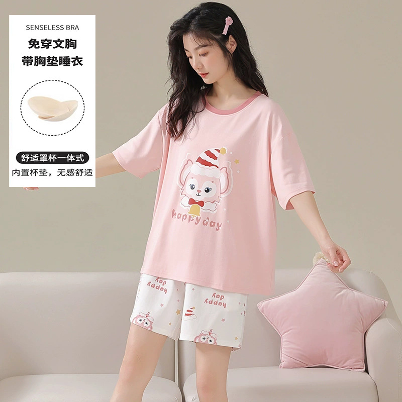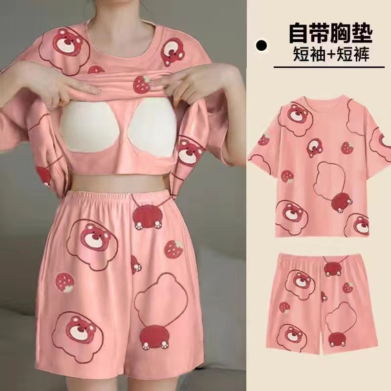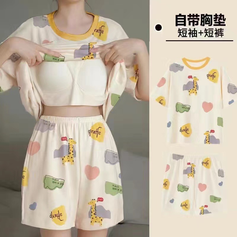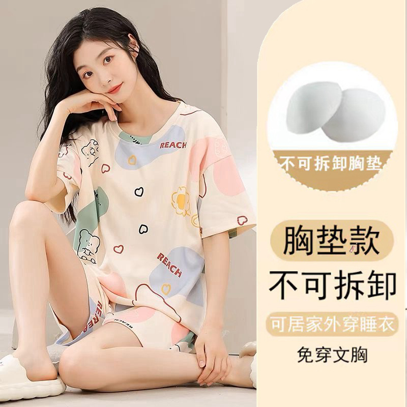 Главная страница > Пижама женская летняя короткая рукава сладкая с нагрудными подушками