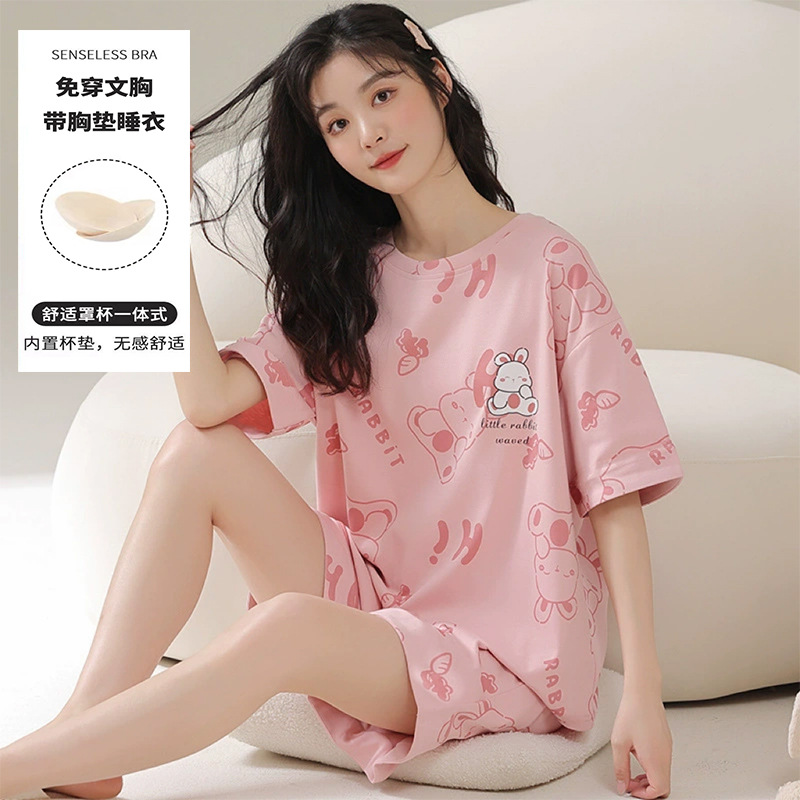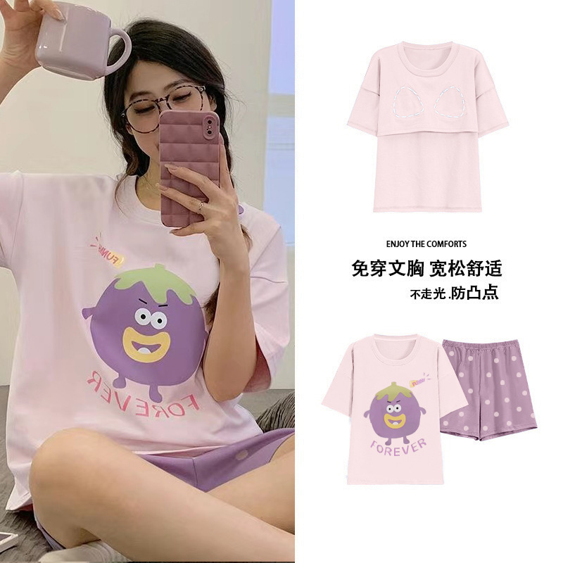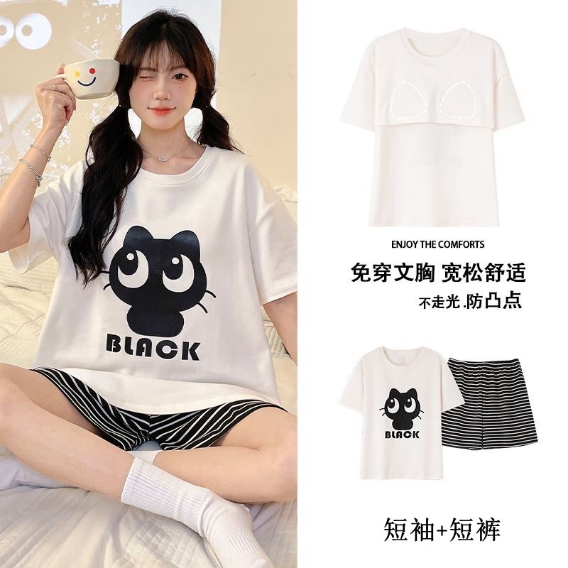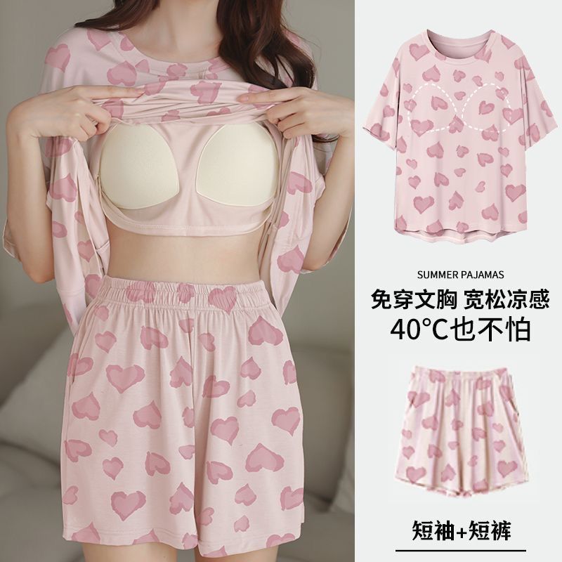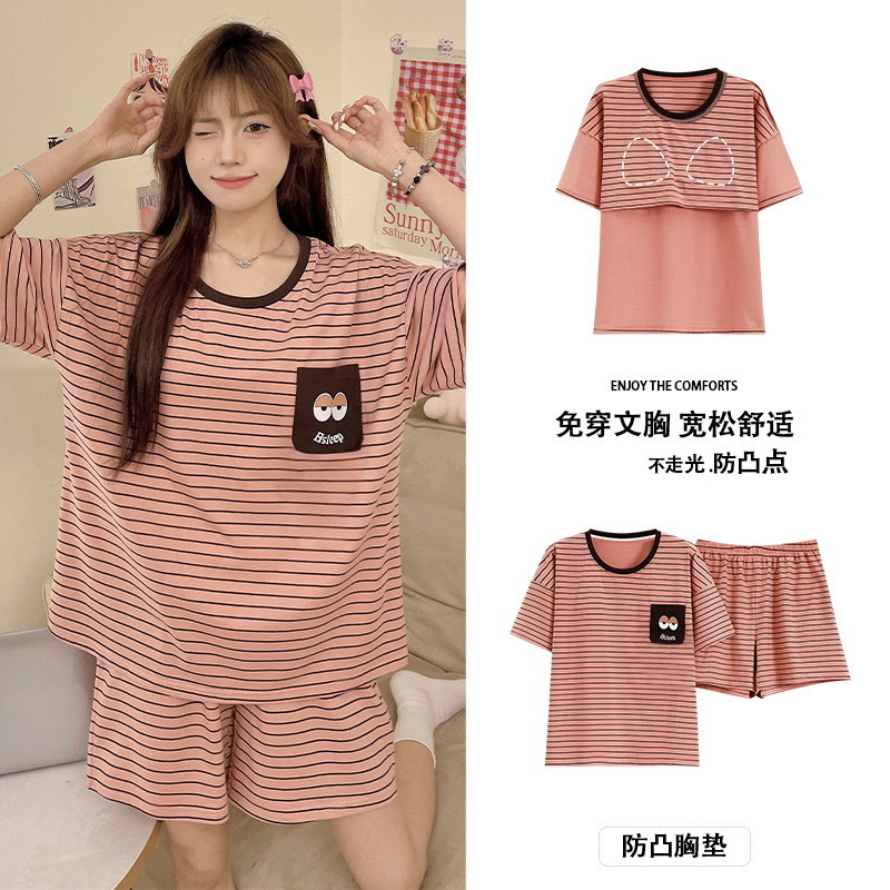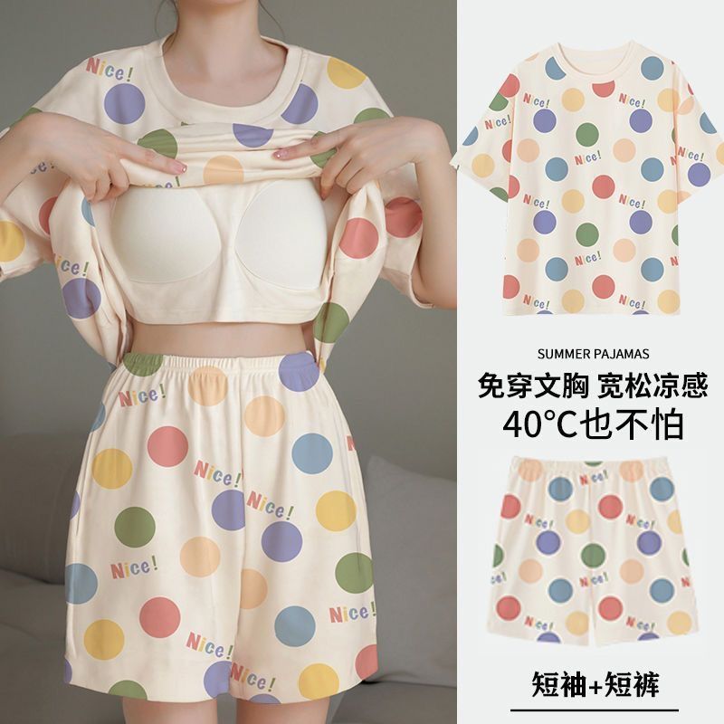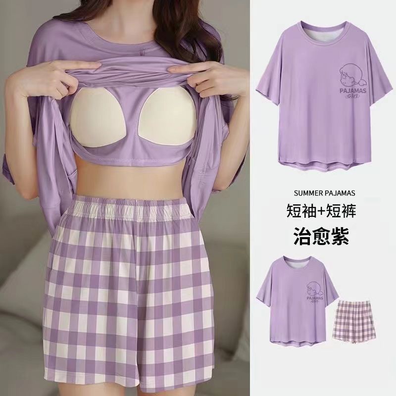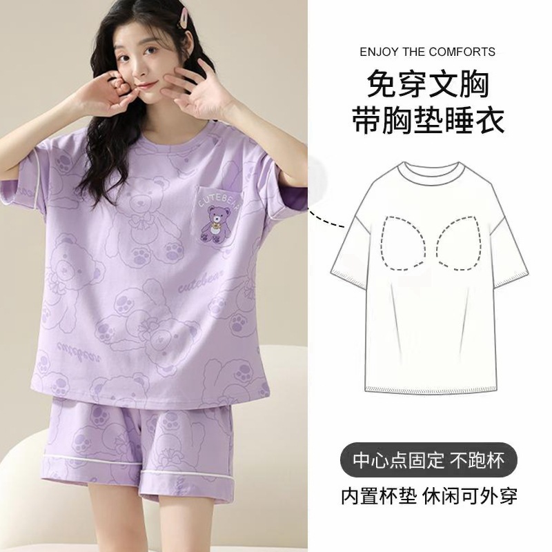 Главная страница > Пижама женская летняя короткая рукава сладкая с нагрудными подушками