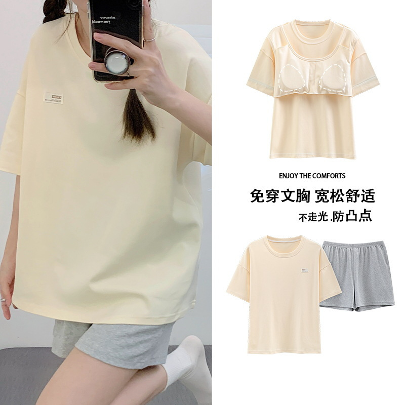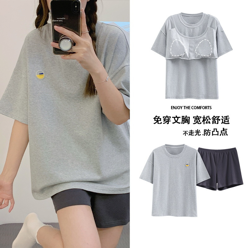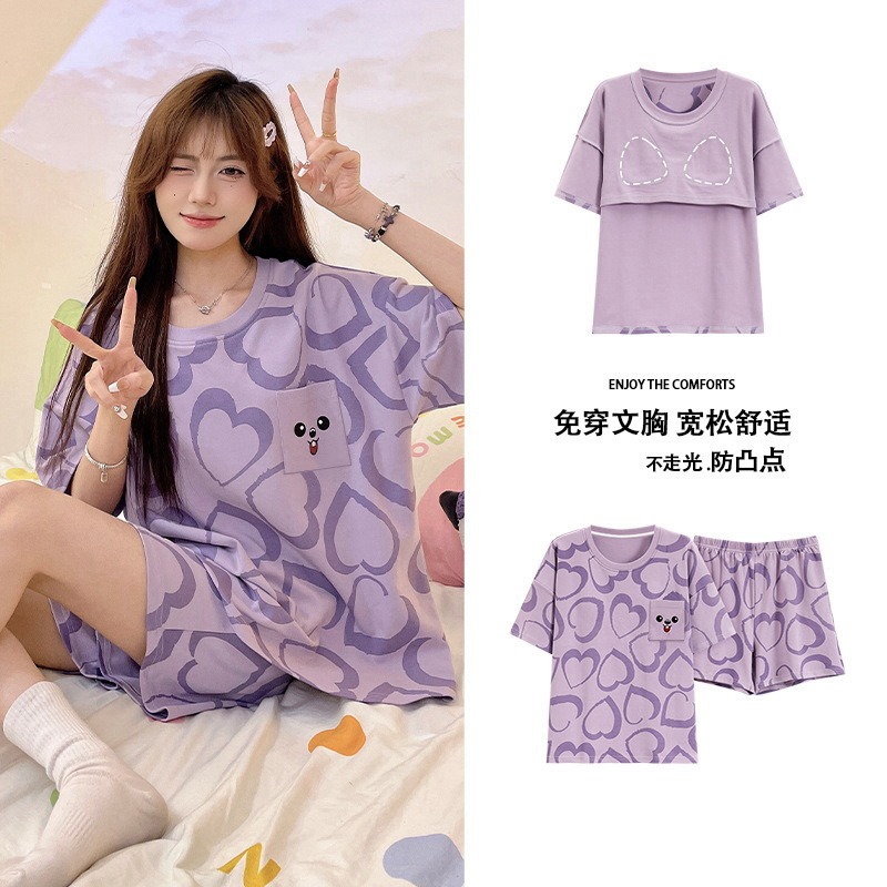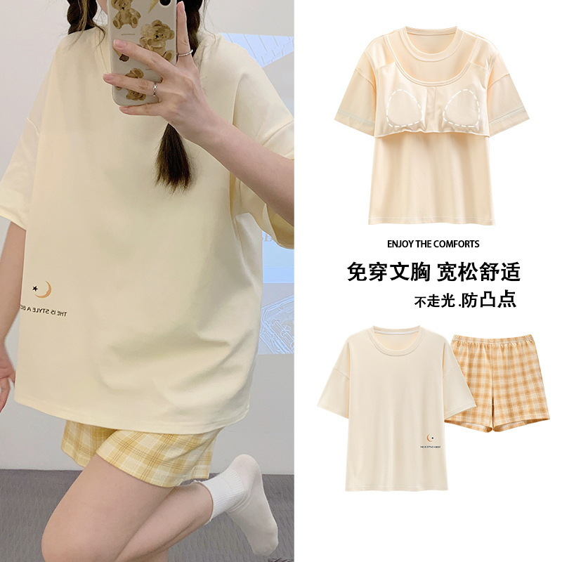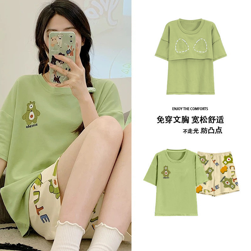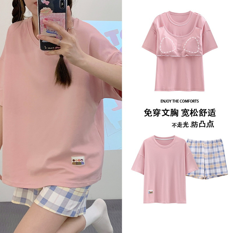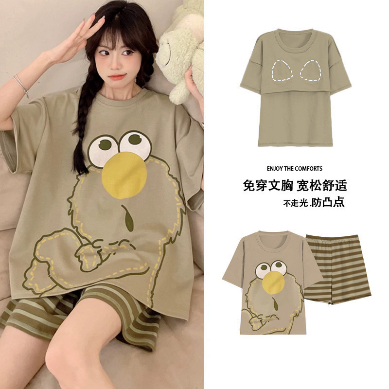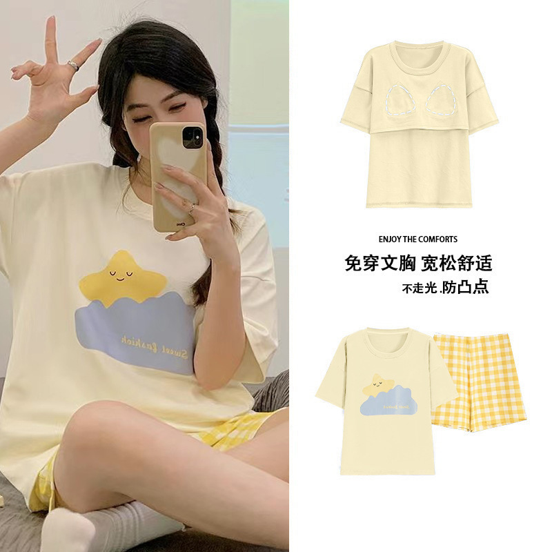 Главная страница > Пижама женская летняя короткая рукава сладкая с нагрудными подушками
