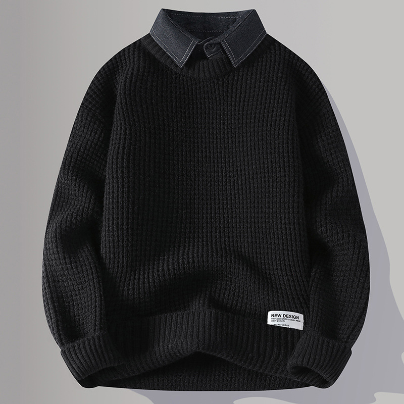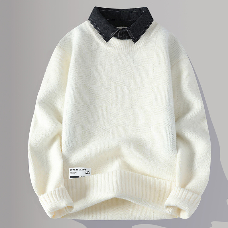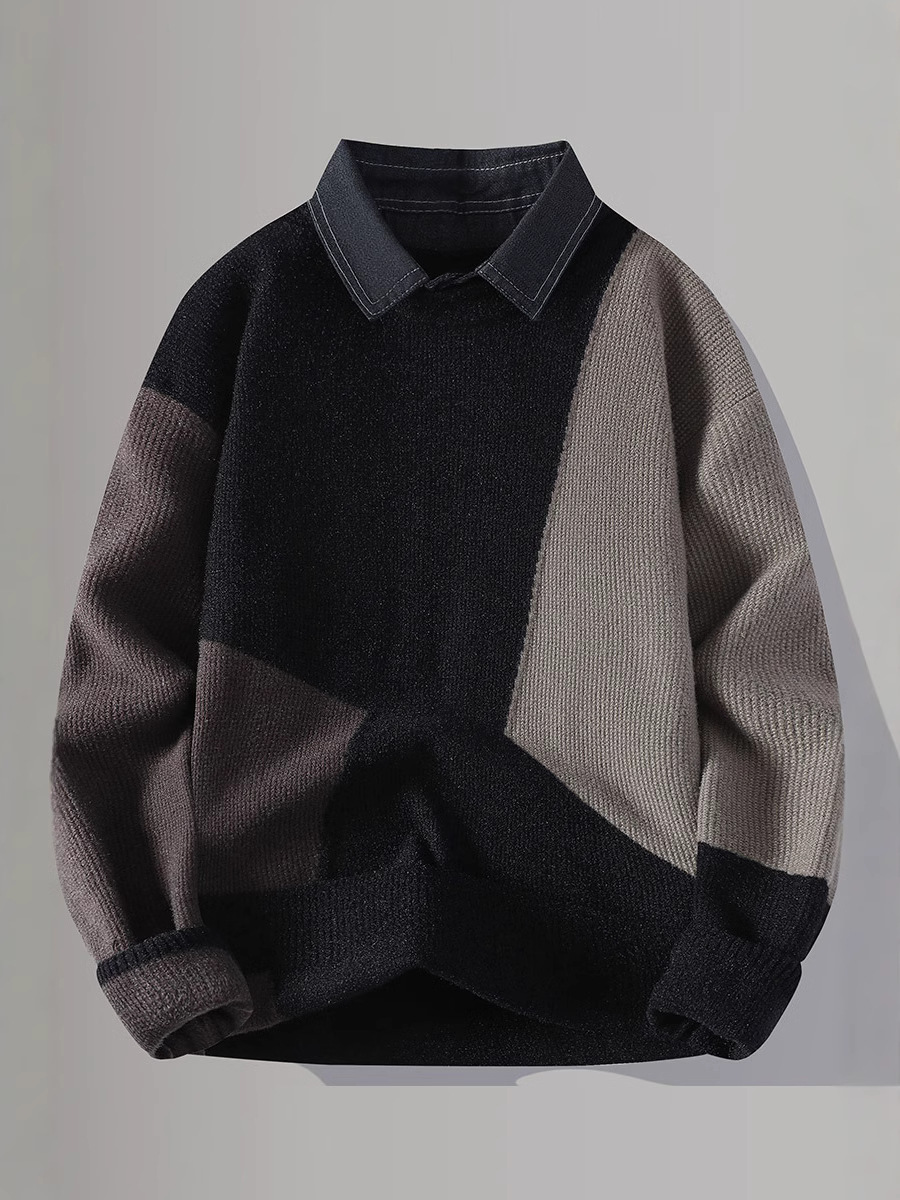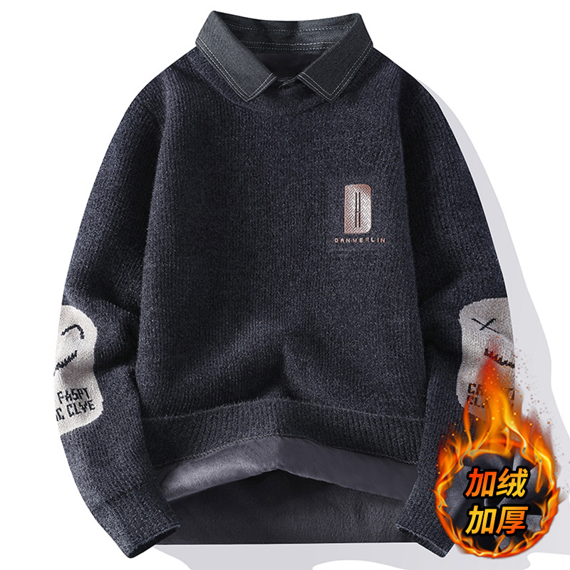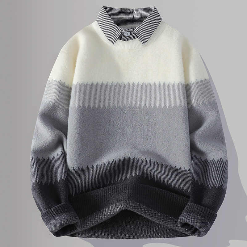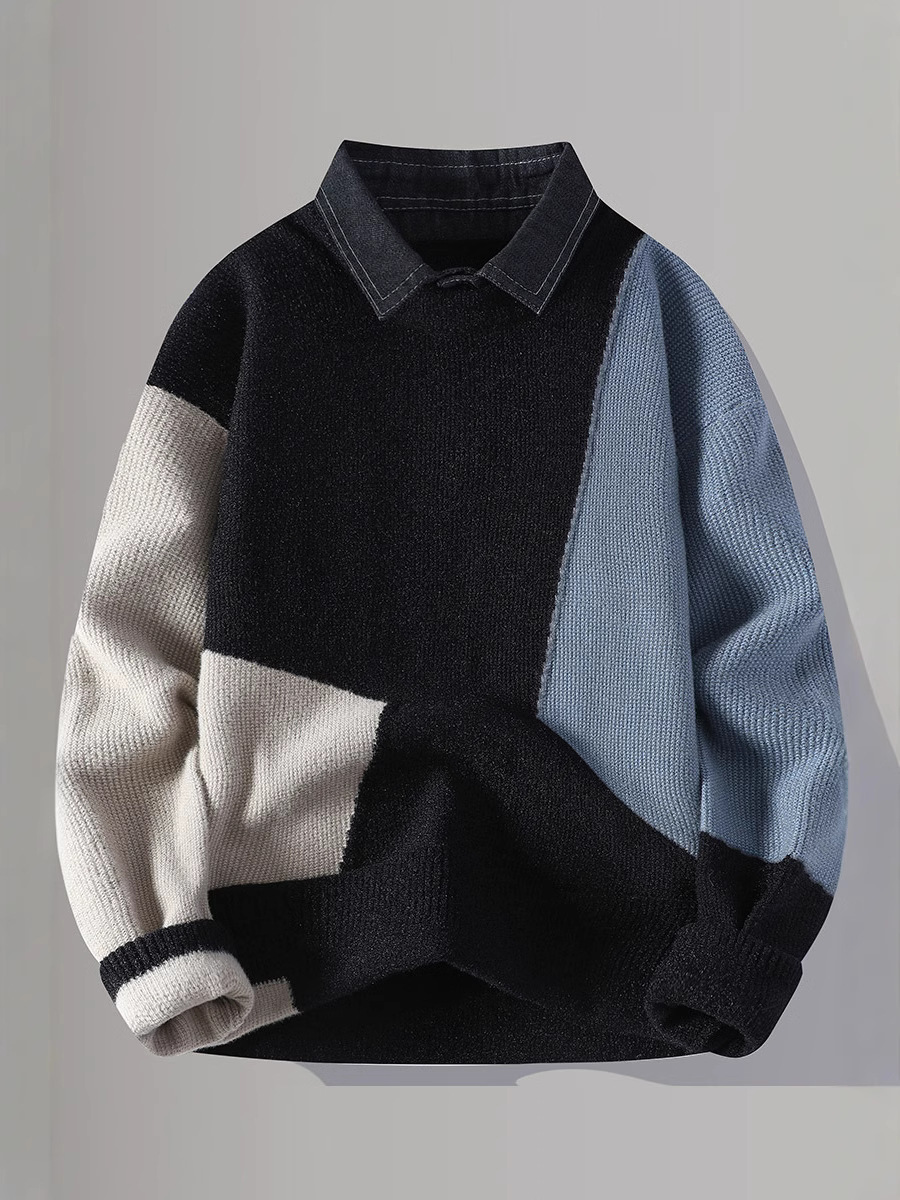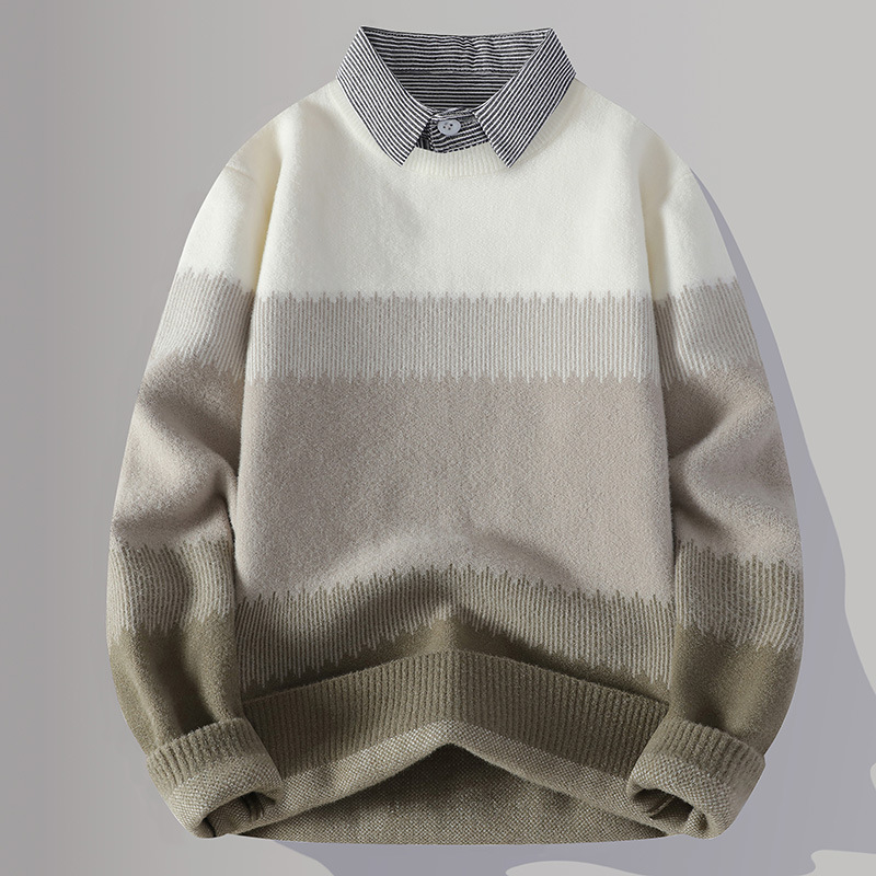 Главная страница > Цветной свитер с воротником рубашки для молодых мужчин осень и зима поддельные два трикотажа для мужчин утолщение теплая повседневная линия для мужчин