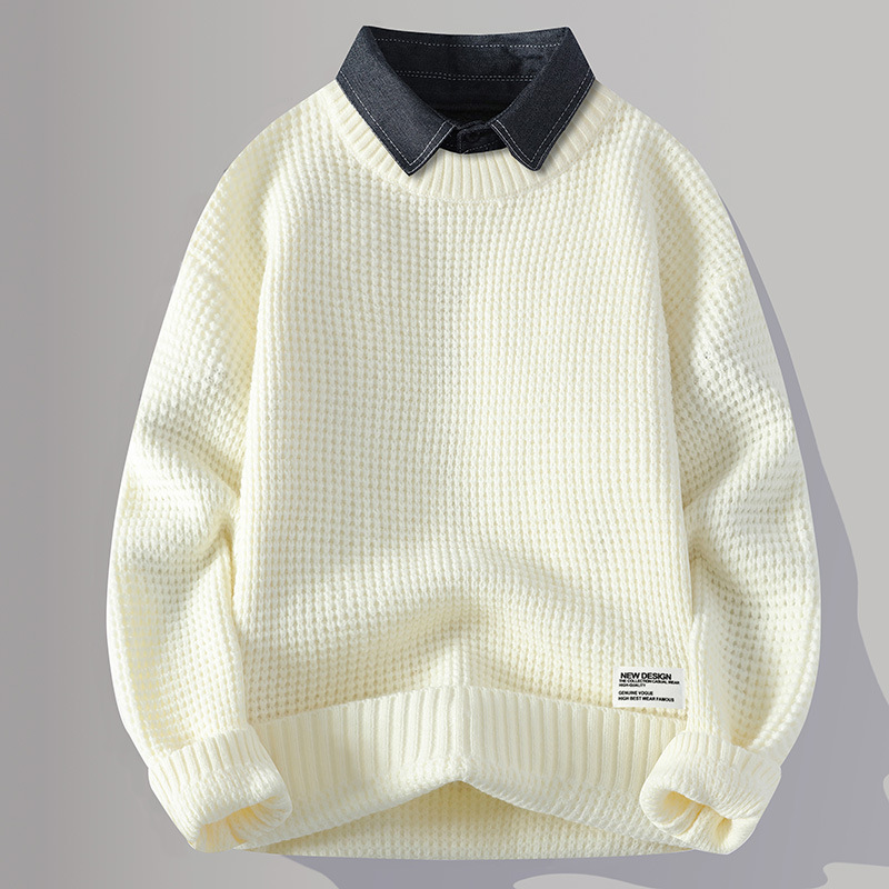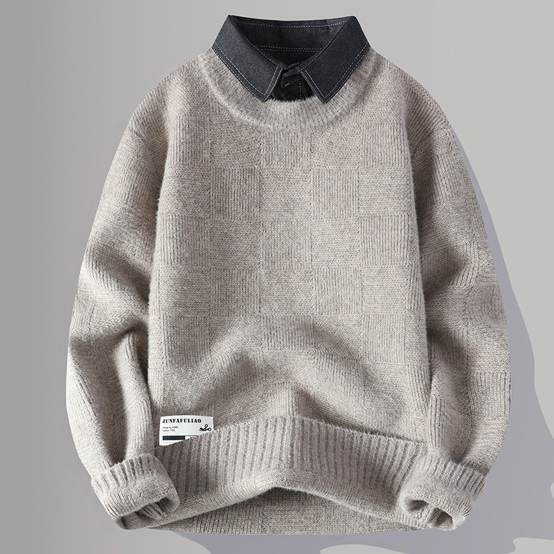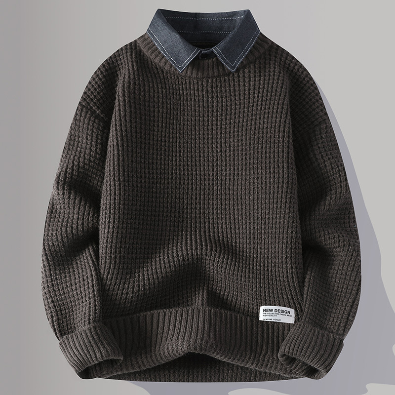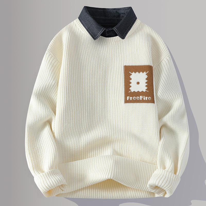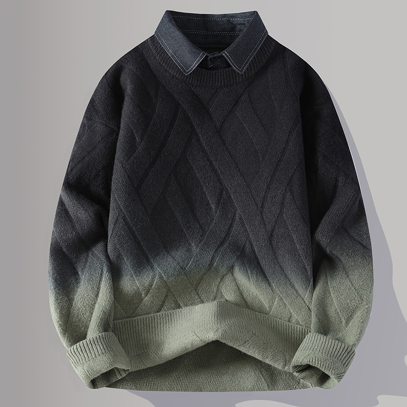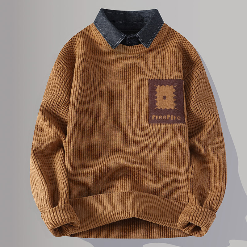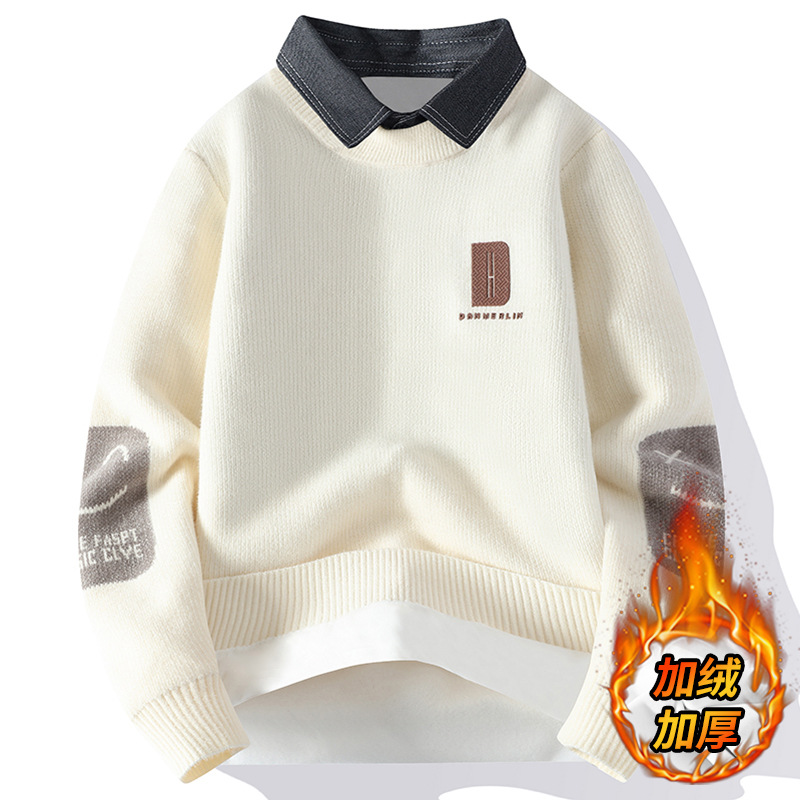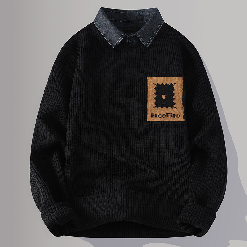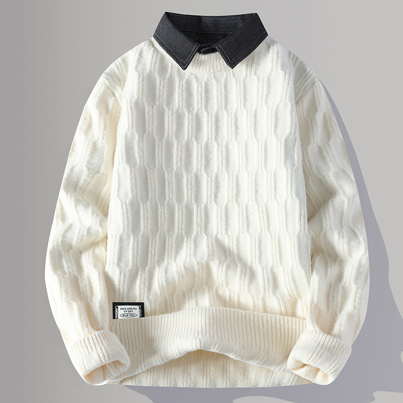 Главная страница > Цветной свитер с воротником рубашки для молодых мужчин осень и зима поддельные два трикотажа для мужчин утолщение теплая повседневная линия для мужчин