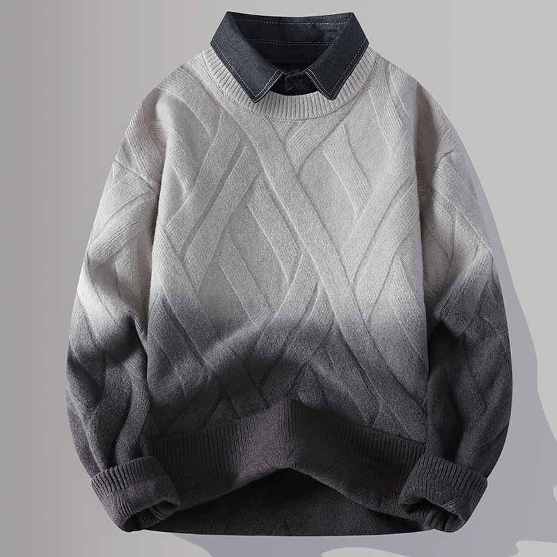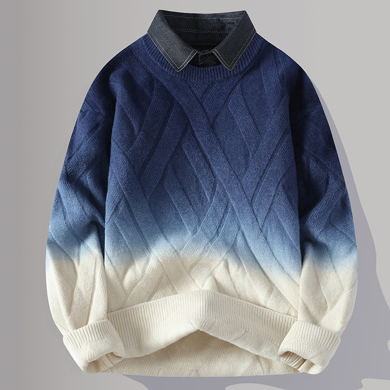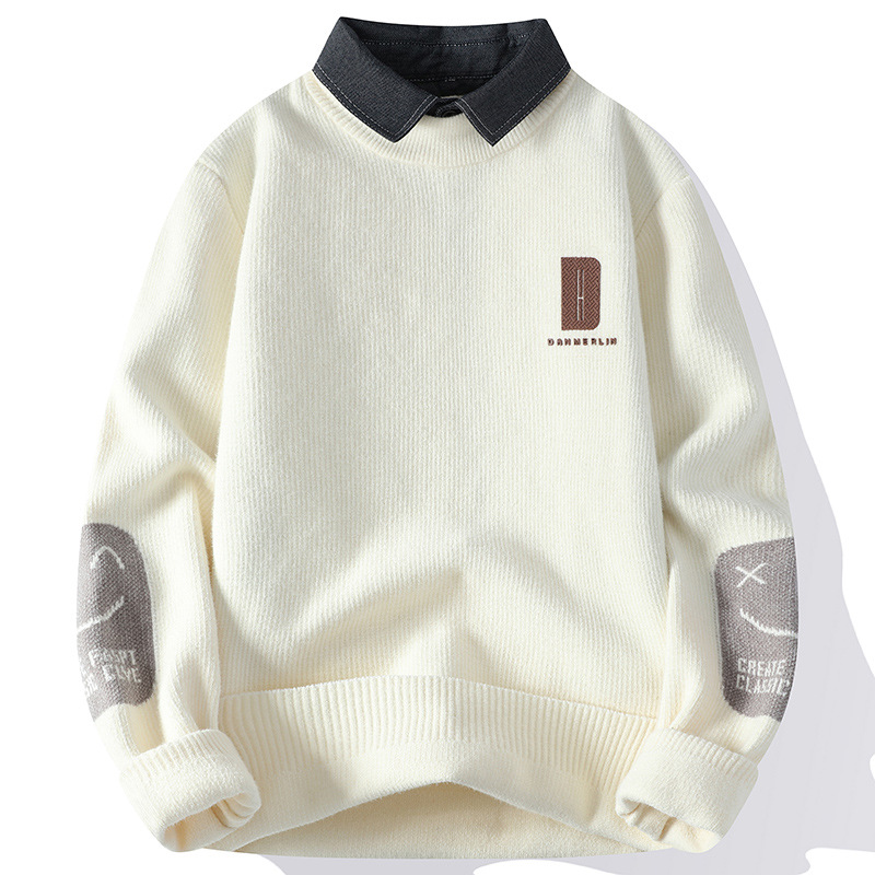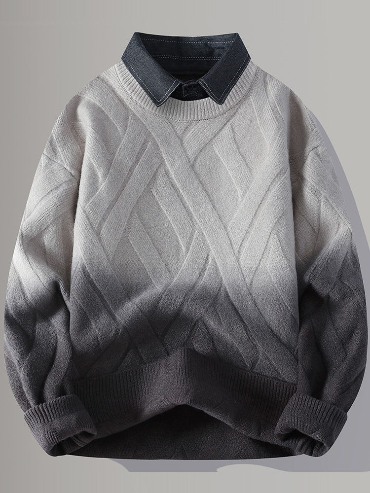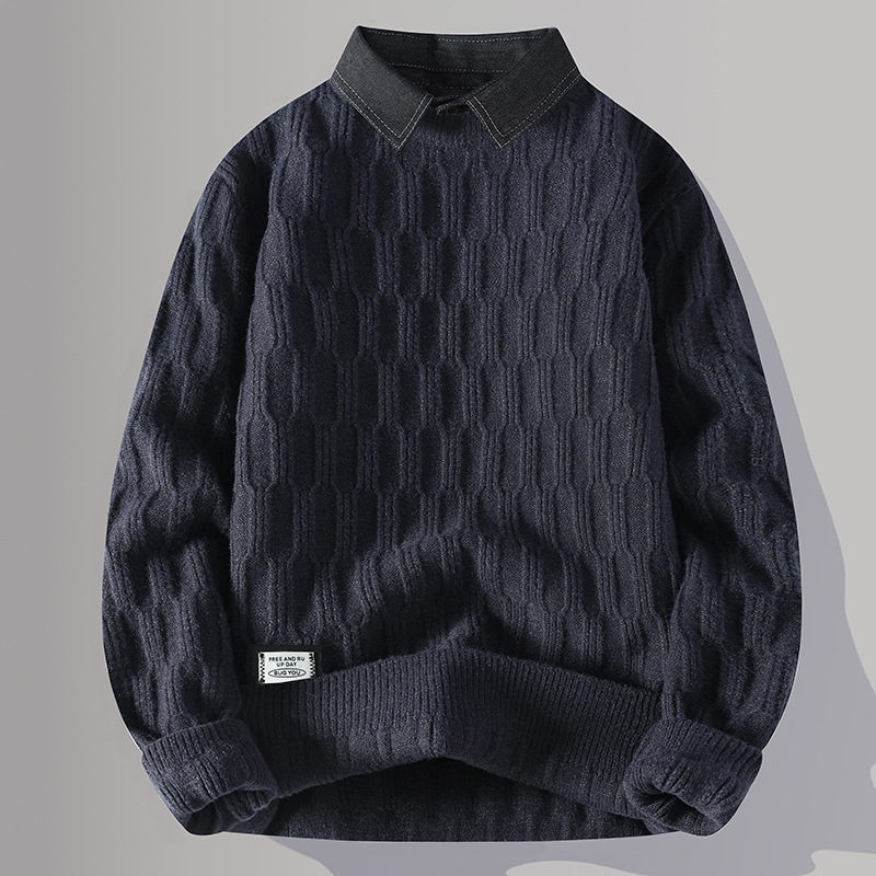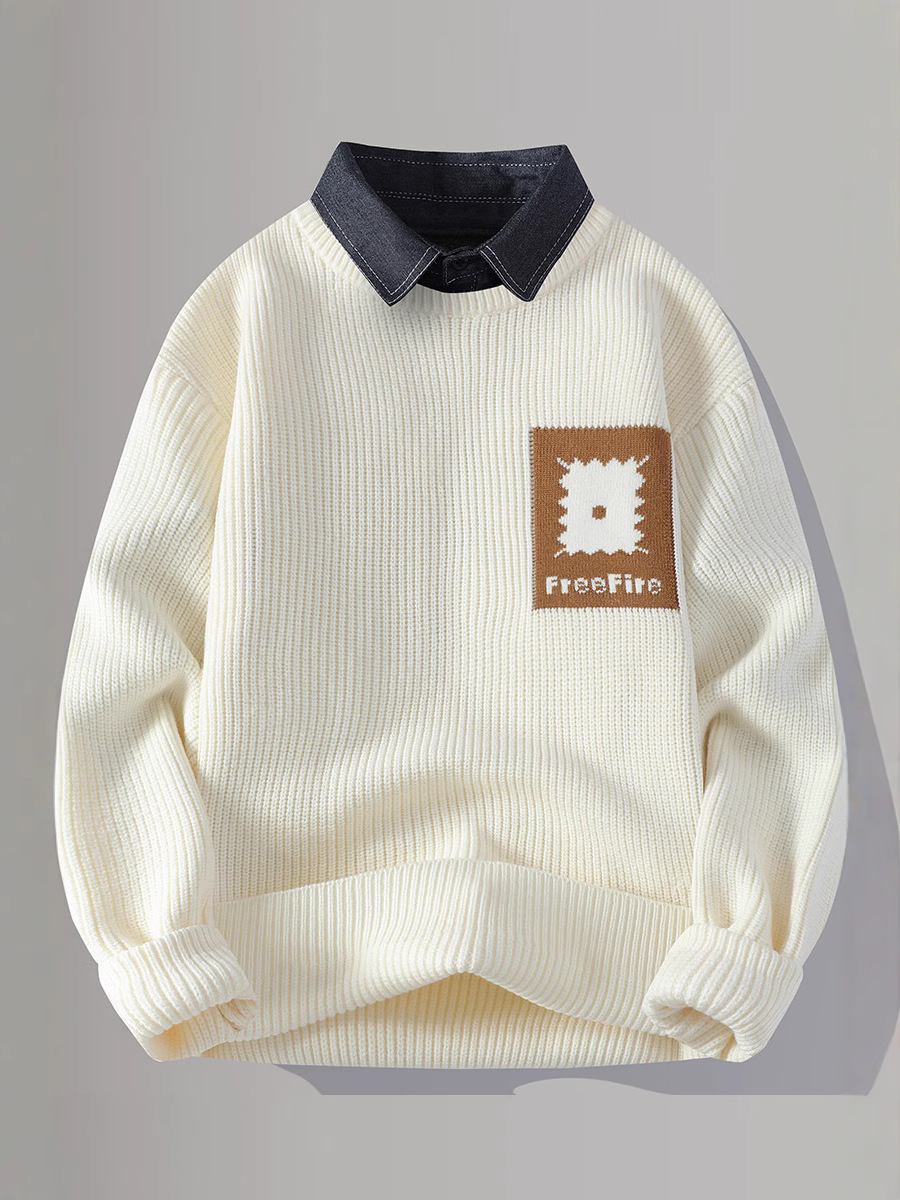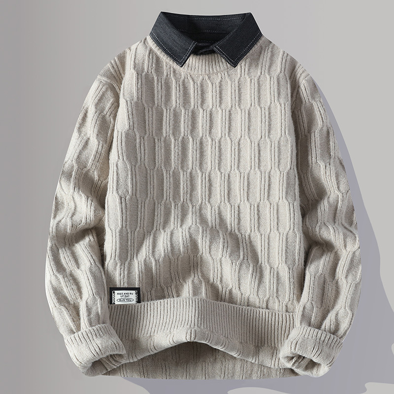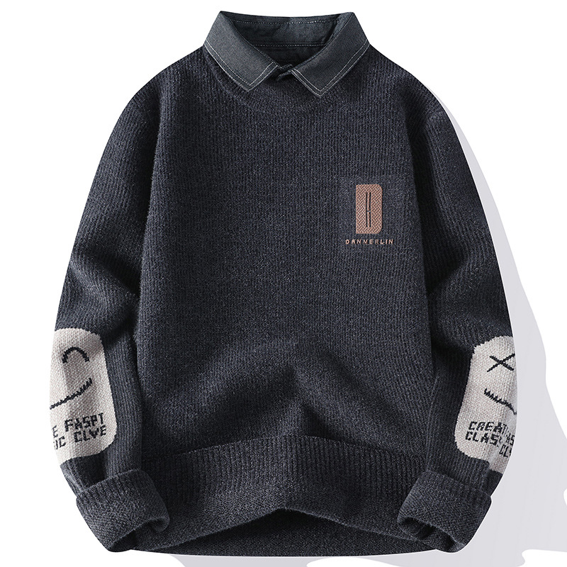 Главная страница > Цветной свитер с воротником рубашки для молодых мужчин осень и зима поддельные два трикотажа для мужчин утолщение теплая повседневная линия для мужчин