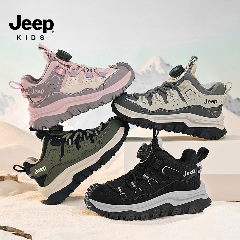 Jeep обувь для девочек осенью и зимой теплые хлопковые кроссовки для мальчиков 2024 новые зимние детские бархатные снежные сапоги