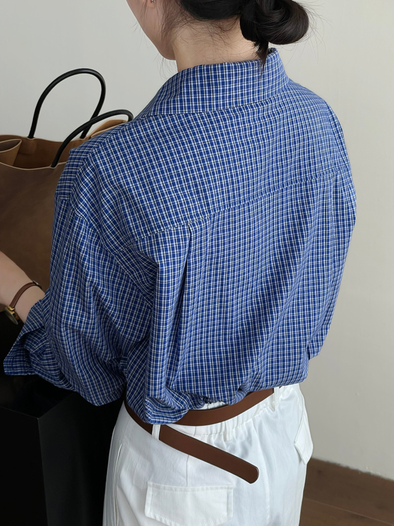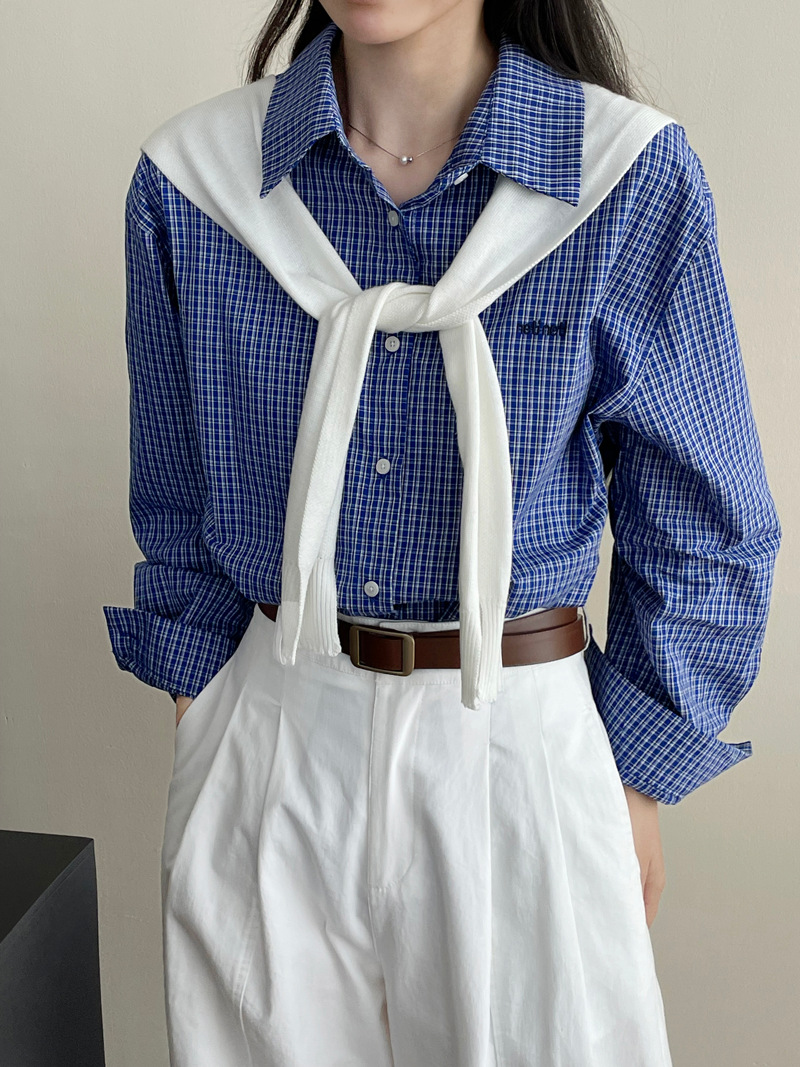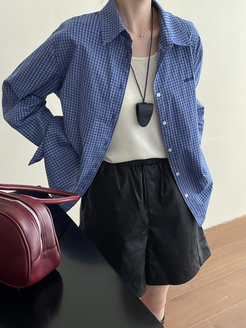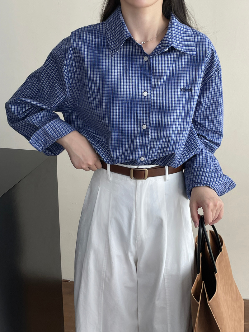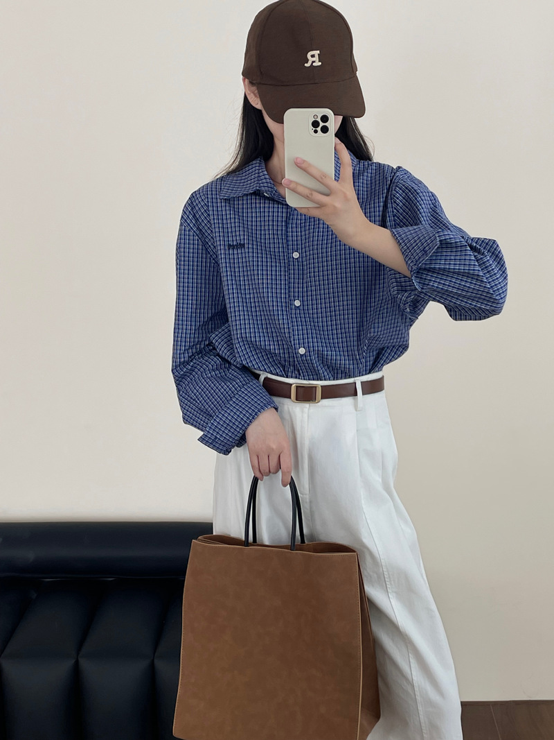 Главная страница > Корейская голубая хлопчатобумажная клетчатая рубашка женская 24 осень свободная повседневная дикая рубашка с длинными рукавами однобортная 2625