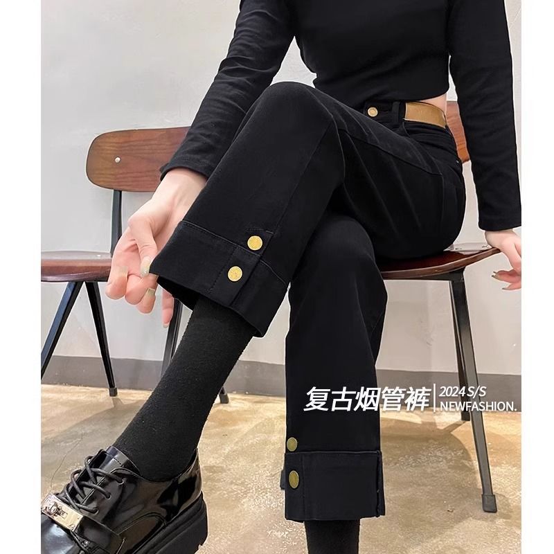 Главная страница > Черные трубочные джинсы женские осень-зима 2024 новая высокая талия тонкая и бархатная маленькая девятибалта прямые брюки