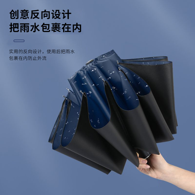 Темно-синий 12-складчатый виниловый зонт увеличенного размера с обратной стороной