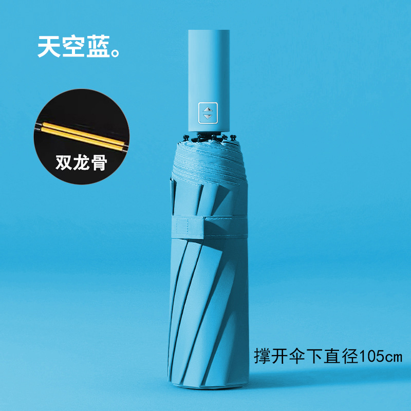 Полностью автоматический виниловый штормозащитный зонт с 20 косточками [небесно-голубой]