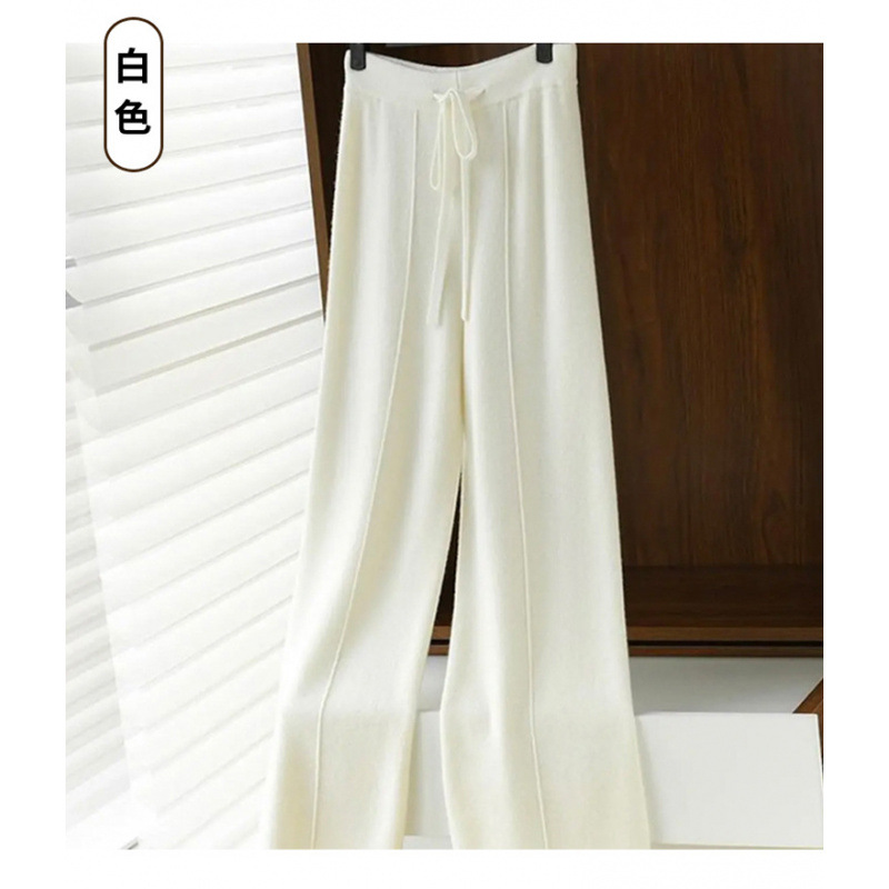 Главная страница > Чистая шерсть 2024 осень и зима новый женский сплошной цвет с высокой талией, широкие брюки, свисание свободные повседневные трикотажные штаны
