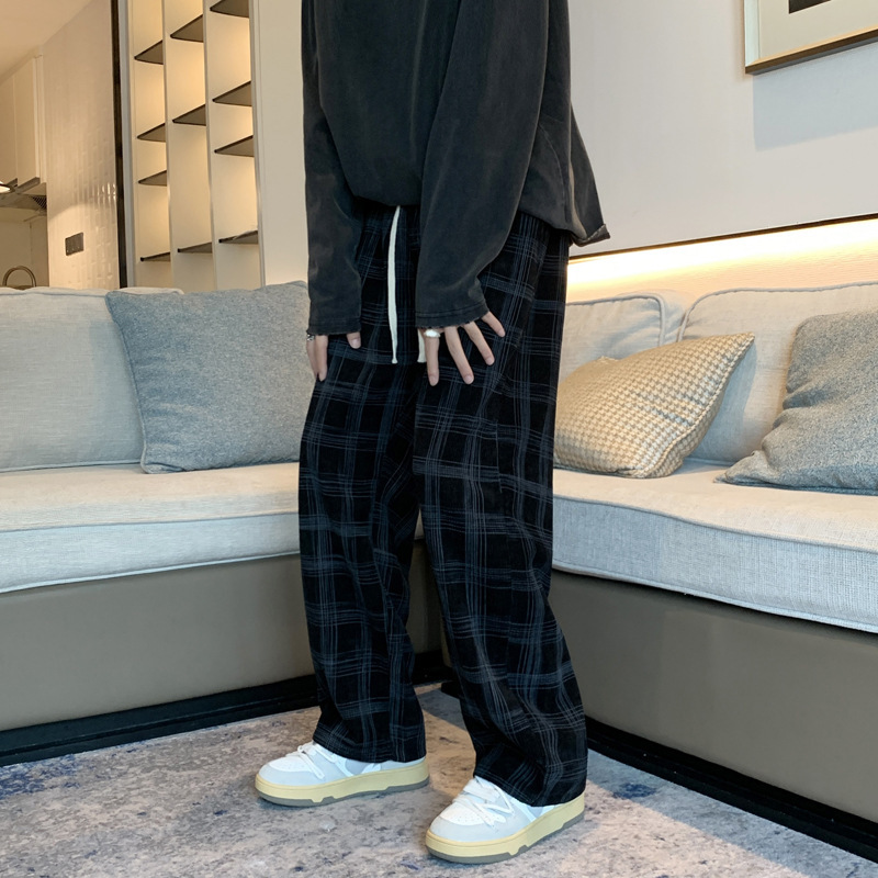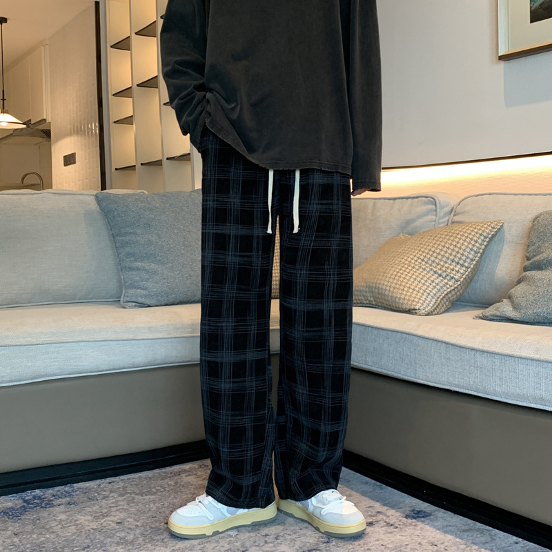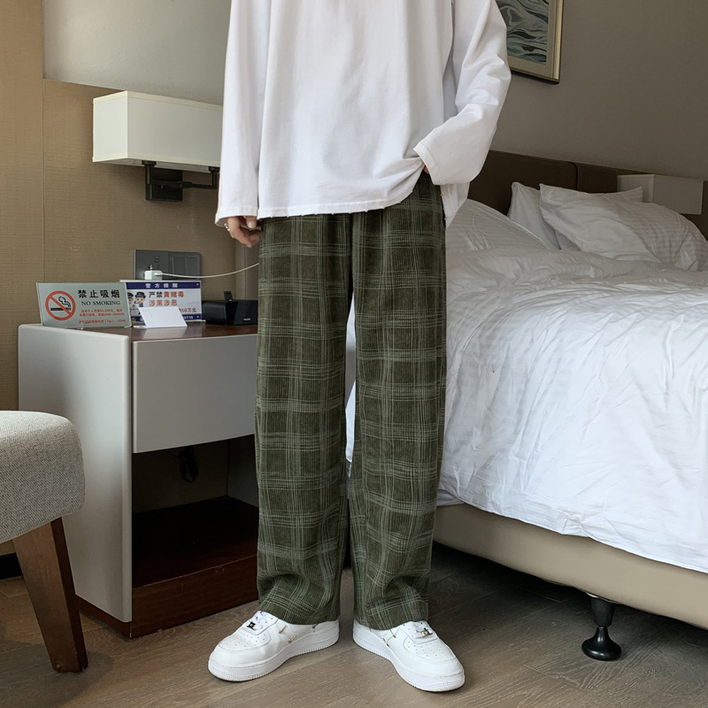 Главная страница > Вельветовые повседневные брюки в клетку, мужские осенние свободные прямые широкие брюки, модные брендовые красивые брюки со шваброй Ruan