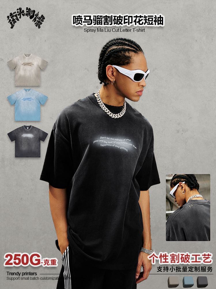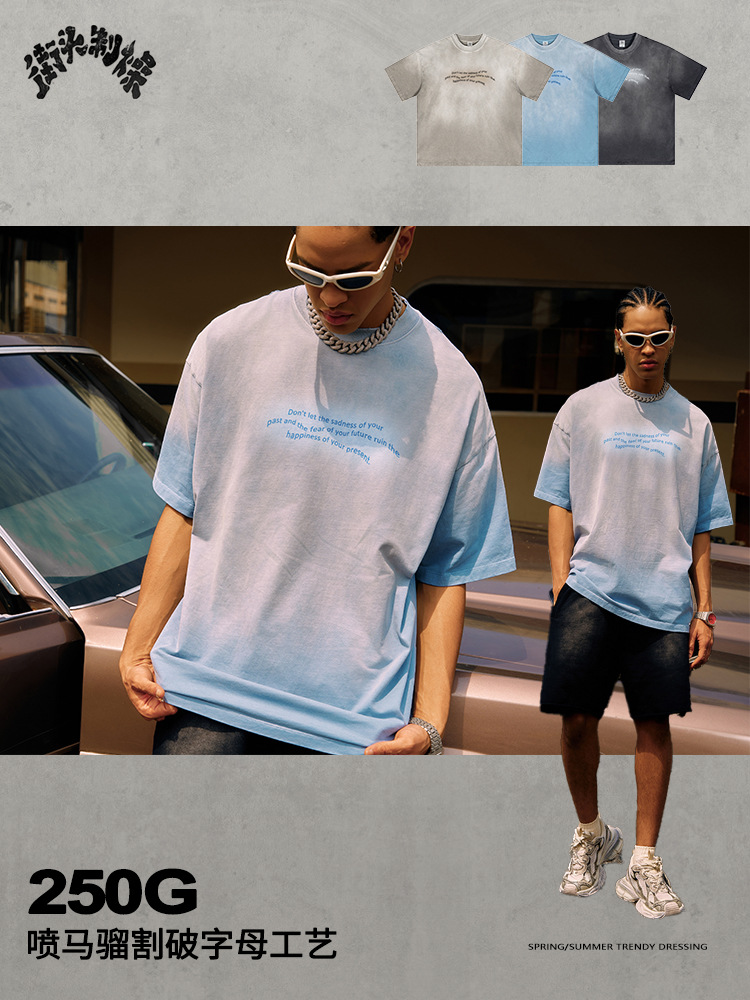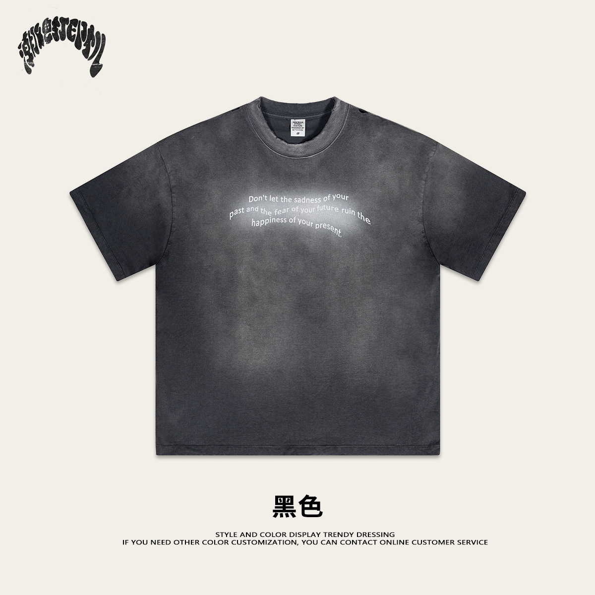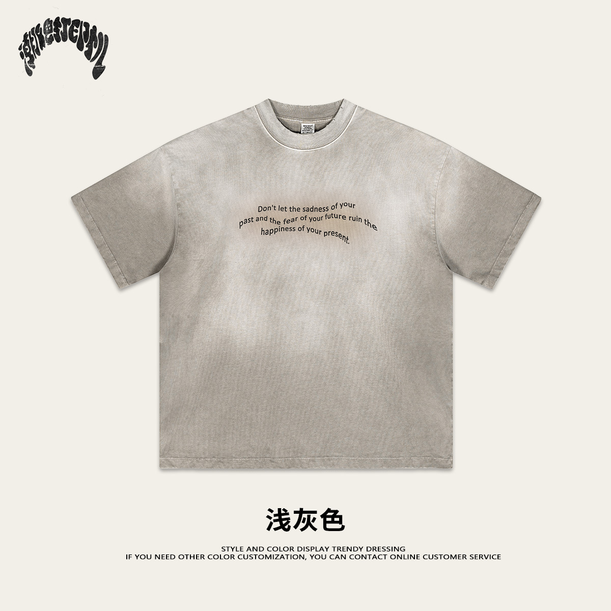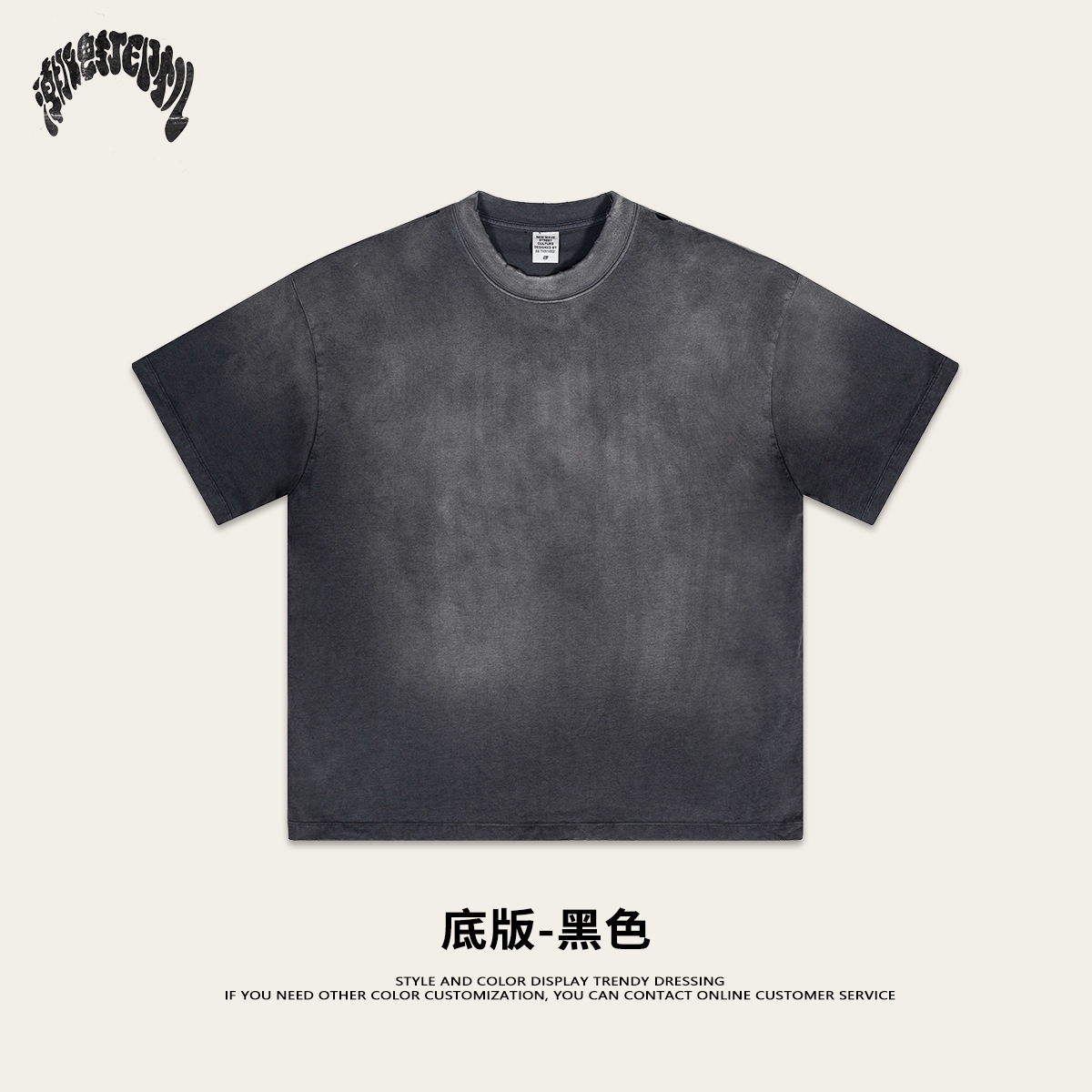 Главная страница > Мужская футболка оверсайз с круглым вырезом, коротким рукавом, американский стиль ретро, 2025 лето, плотная ткань, большой размер, обработанная стиркой